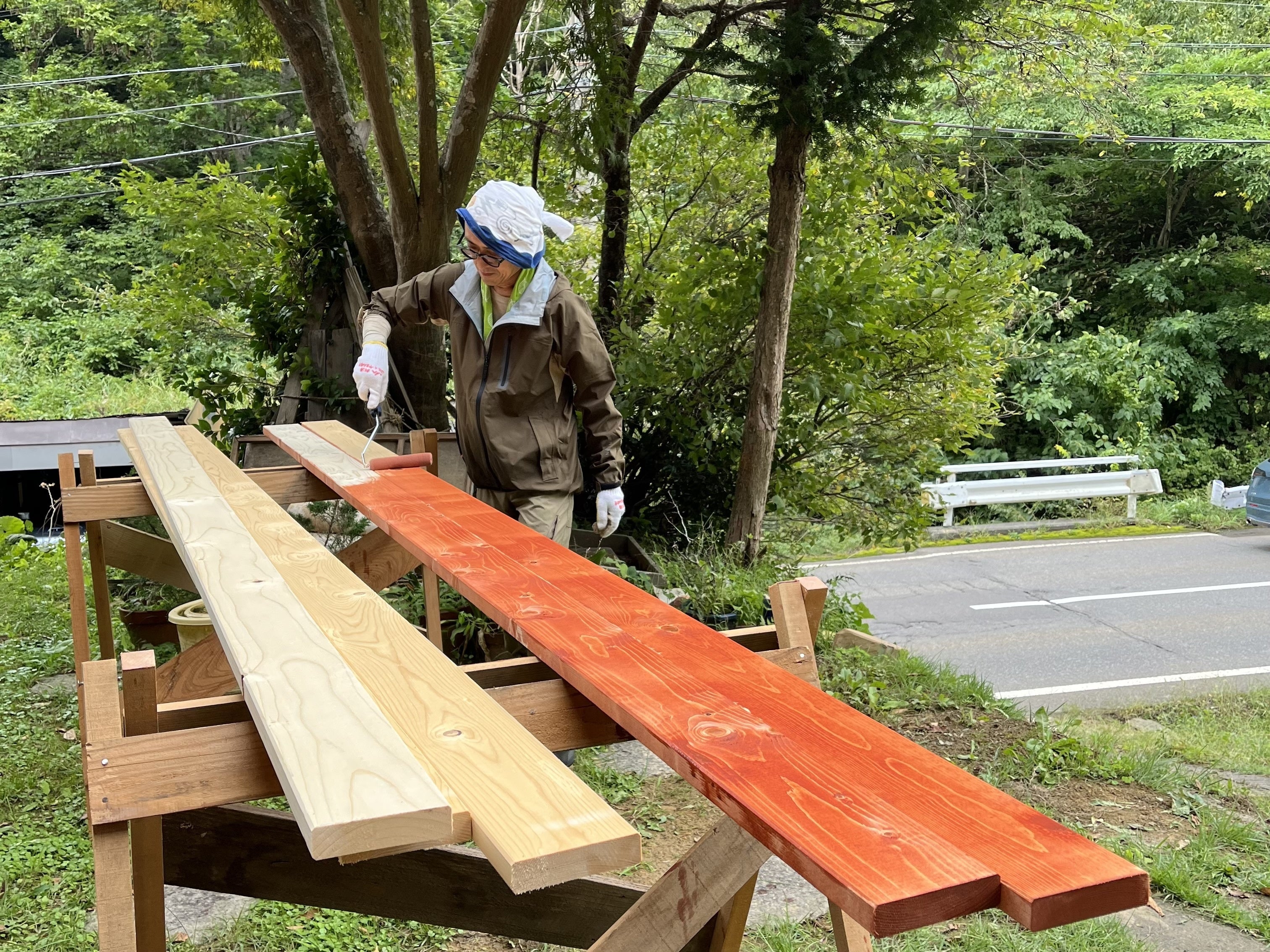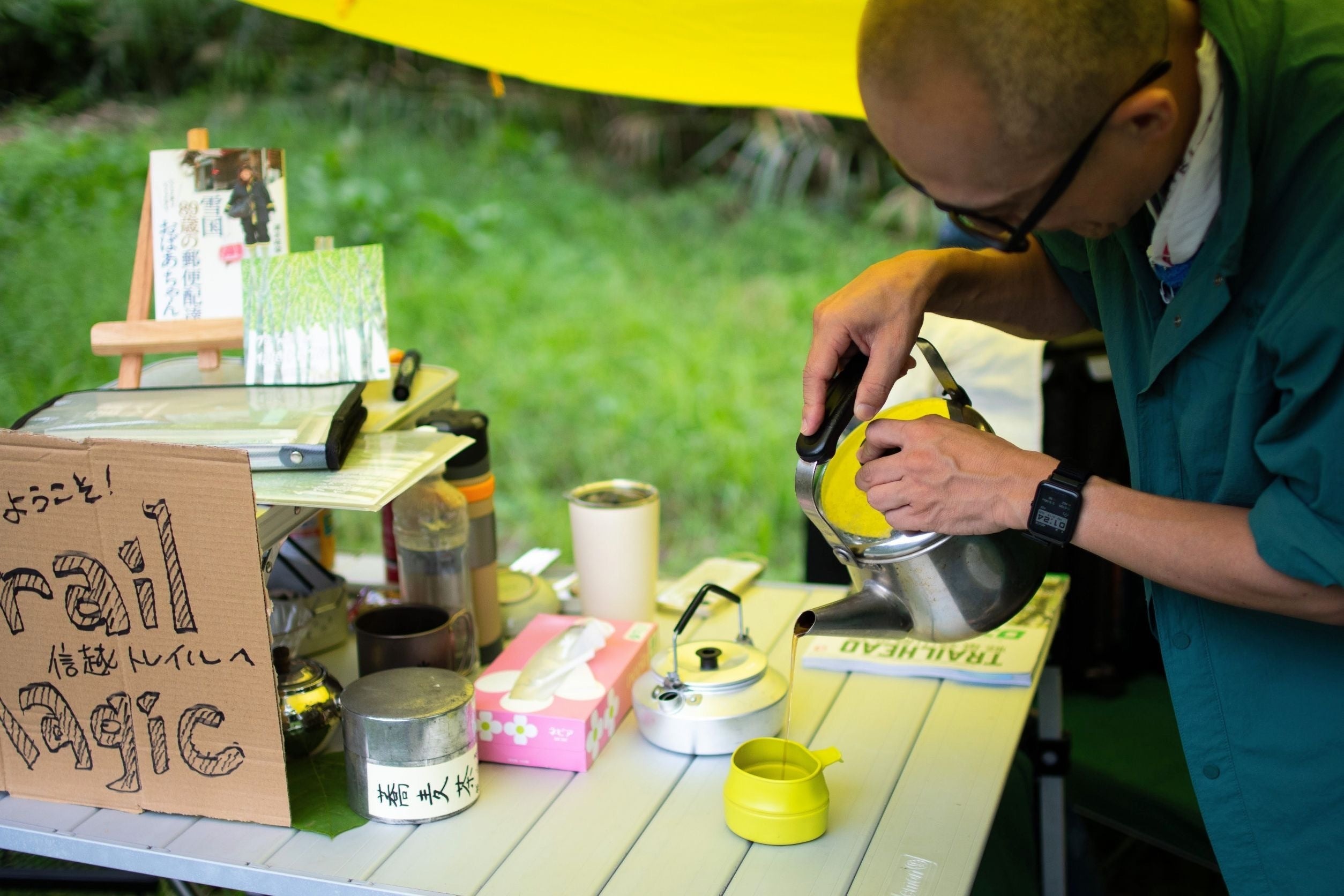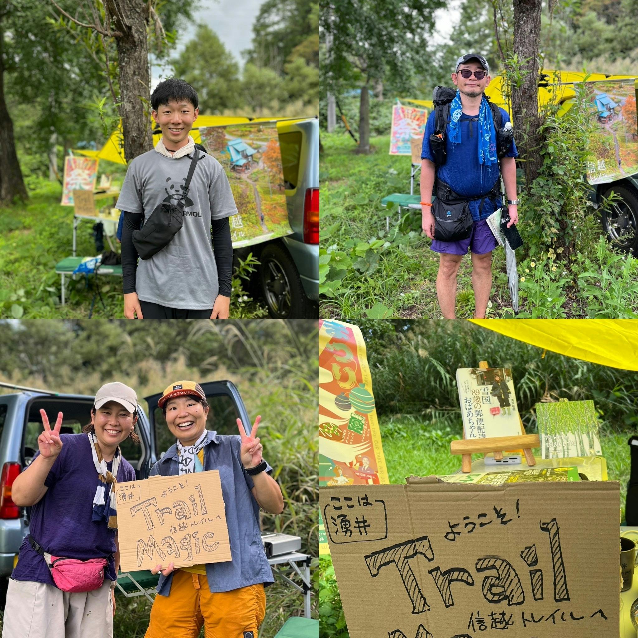 涌井堂を構想し始めた2024年、涌井集落で「トレイルマジック」を実施しました。これはお遍路でいうところの “お接待” で、トレイルを歩くハイカーに軽食などを振る舞ったりするものです。信越トレイル事務局のあるなべくら高原・森の家で事務作業をしているとハイカーとはほとんど出会えないのですが……実際に歩いている人と話せるだけで俄然やる気が湧いてきますね!実際、お茶を飲みながら宿泊所の相談を受けたりと、“出張ビジターセンター” のような場面もありました。