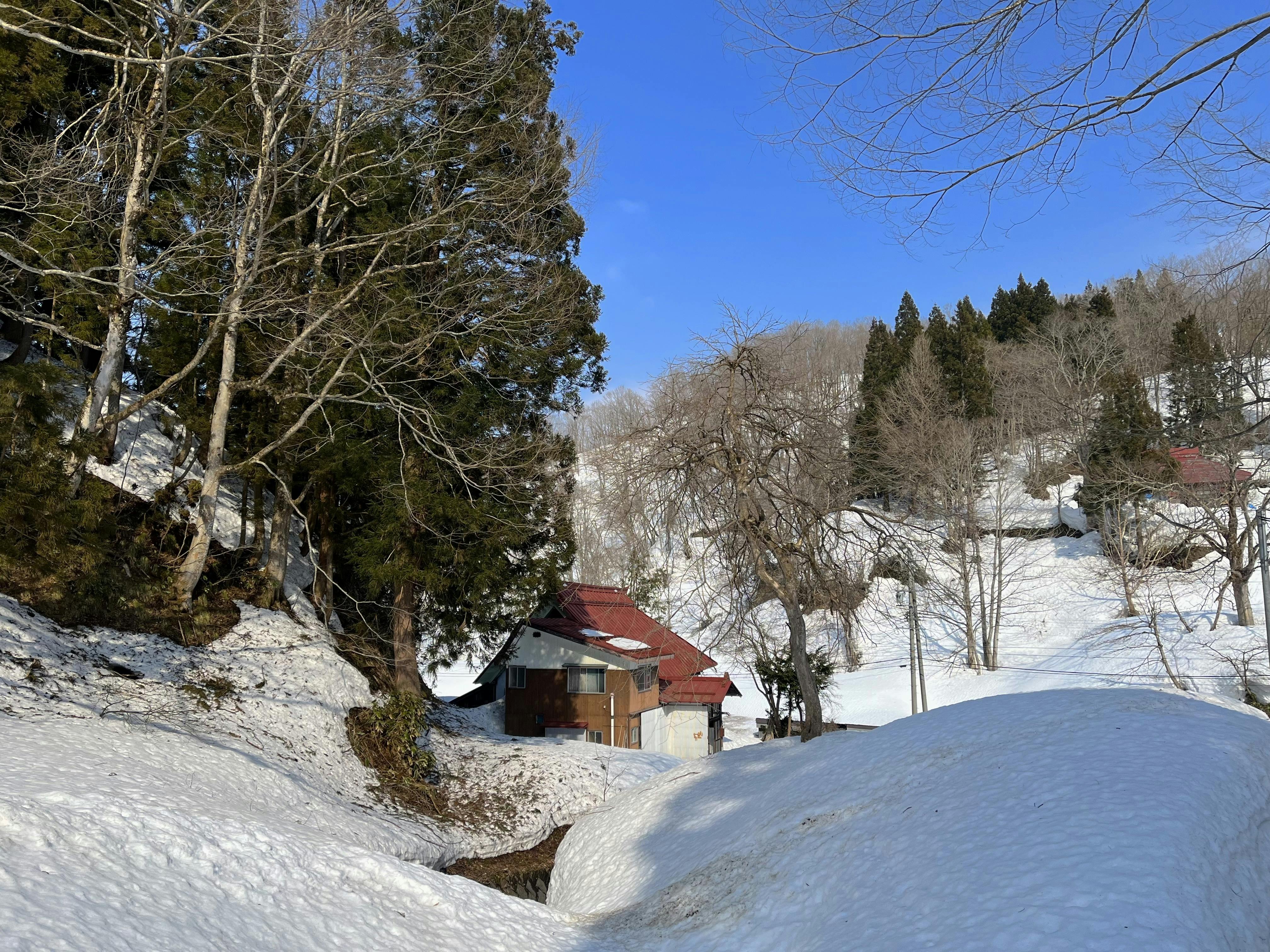 さて、「単なるトイレの工事か」と思われるかも知れませんが、その工事費の捻出は困難を極めます――涌井堂は飯山市の中でも雪深いエリアに位置し、冬期は積雪が 4m を超えることも珍しくありません。信越トレイル上では 8m に達する場所もあり、1年のうち約半年しか歩けないという商売が困難な土地なのです。