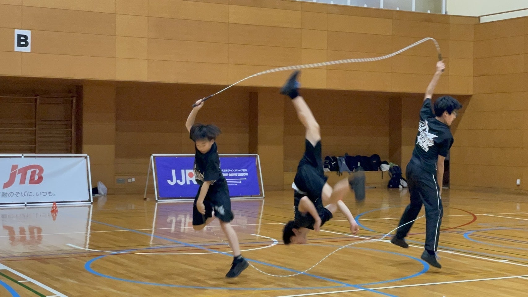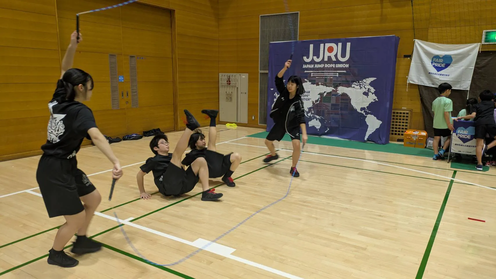 縄を回す人を「ターナー」、跳ぶ人を「ジャンパー」と呼び、ステップ・ダンス・アクロバットなどを自由に組み合わせ、チームごとに表現することができる魅力あふれる競技です。