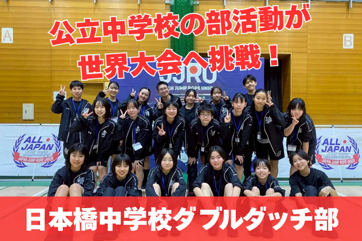 私たち日本橋中学校ダブルダッチ部は、2月に開催された「JJRU ALL JAPAN 2025」において好成績を収め、日本代表として7月に開催される世界大会(開催地:川崎市)への出場が決定しました!