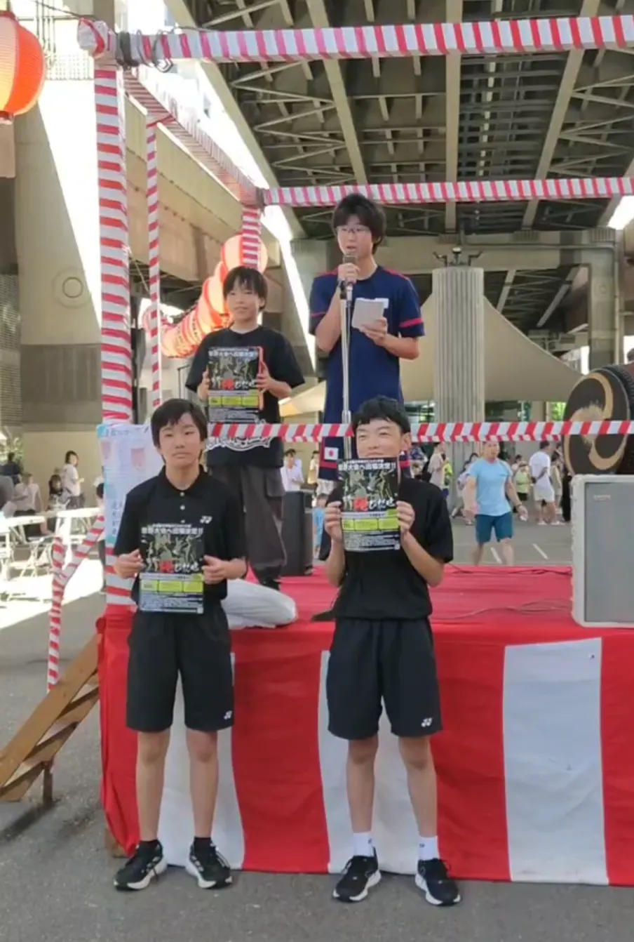 子供たちは、櫓の上から応援のお願いをさせていただきました!