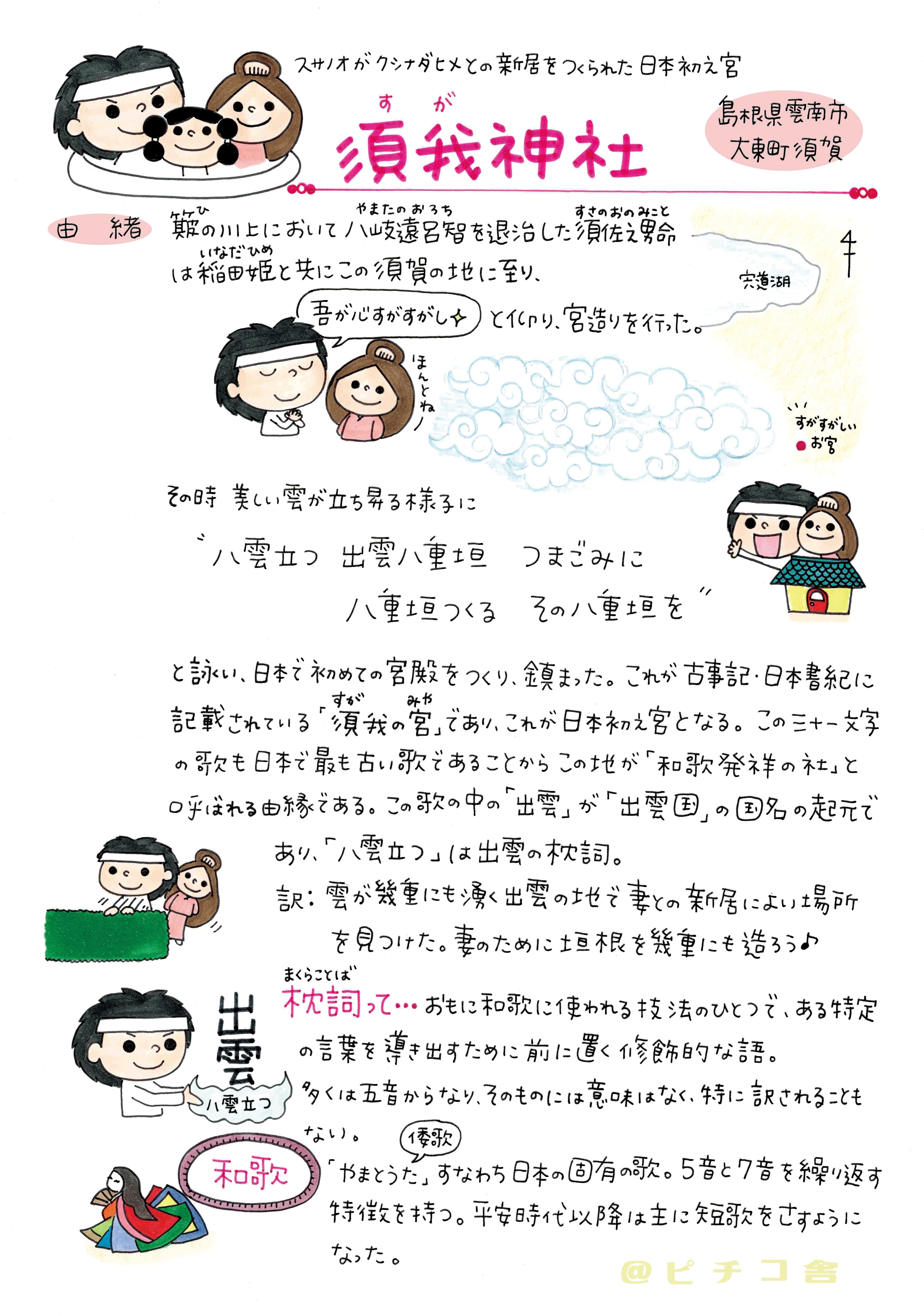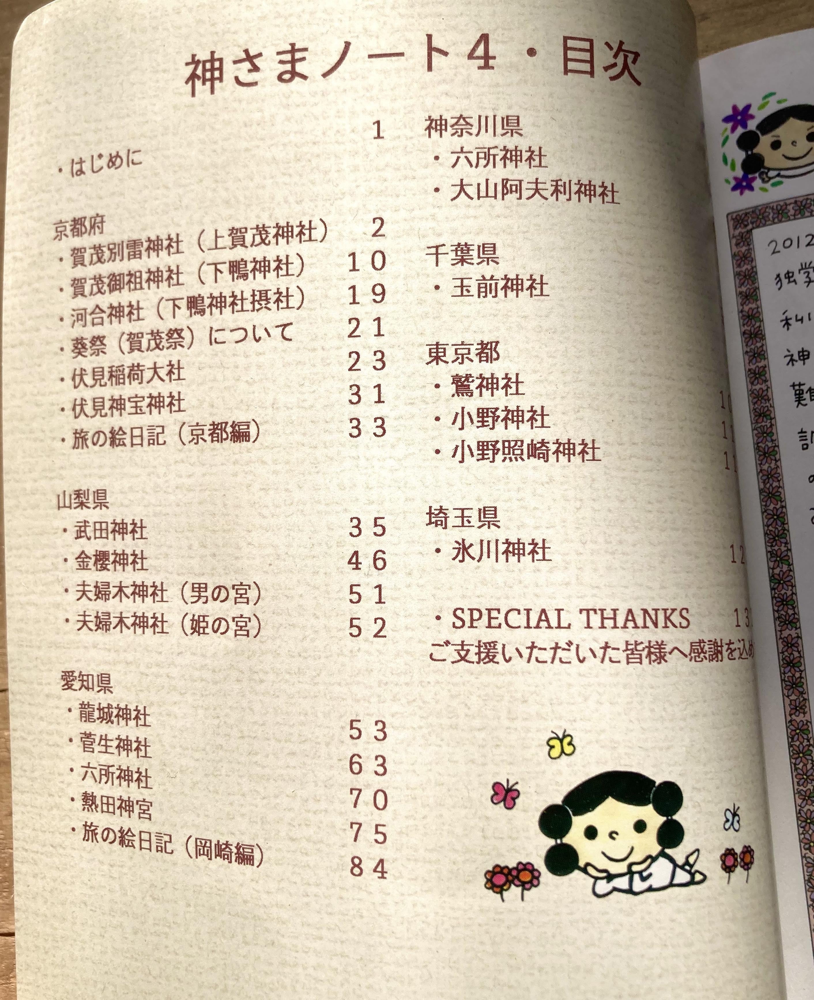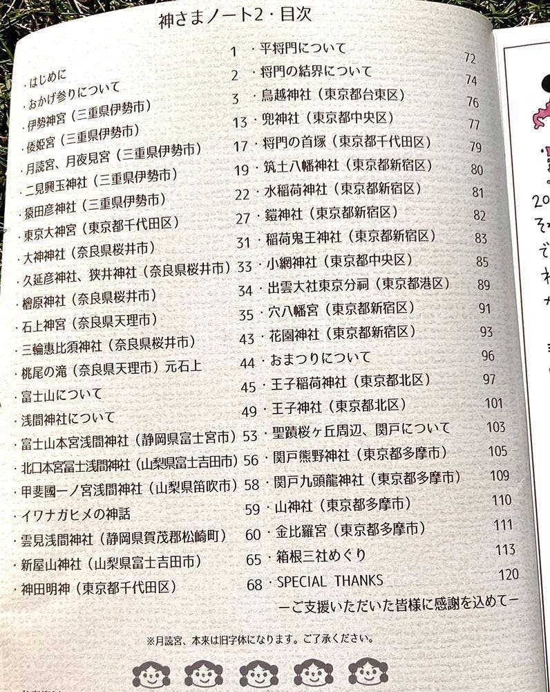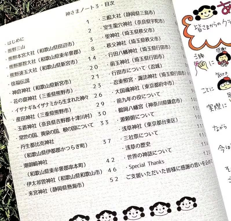 2012年より神社巡りを始めて、当初は何の気もなしにお参りしていたのですが、ふと、神さまって??何で神社ってあるの??と思い始めて好奇心の赴くまま独自に調べてまとめ、そのイラストレポートをまとめた書籍「神さまノート」をこれまで5冊製作してまいりました。