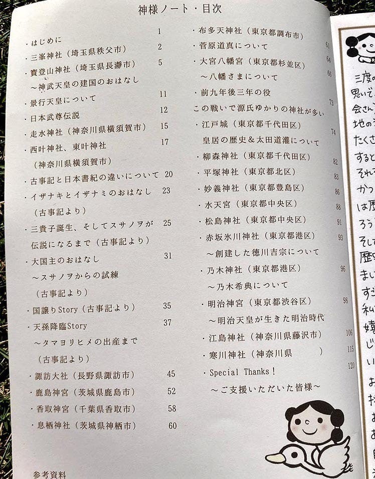 神さまノート1の内容↓(神さまノート1の目次ページより)