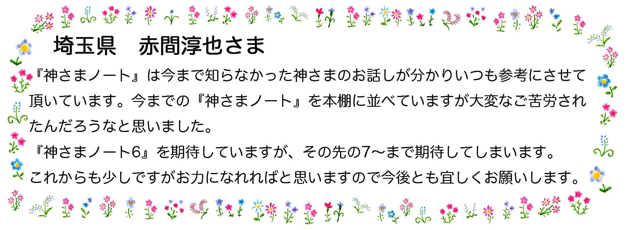 これまで皆様のおかげで5冊の「神さまノート」を出版してまいりました。神さまノートの輪がどんどん大きくなっているのを感じております。