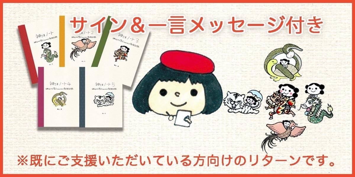 数多くある神社の本の中から、また世界中渦巻くネット社会の中をすり抜けてこの「神さまノート」を見つけてくださったことに本当に感謝します!!そして今回新作のご支援を頂けたこと、本当にありがとうございます。新作も楽しんでいただけるよう、精一杯頑張ります!どうぞよろしくお願いいたします。