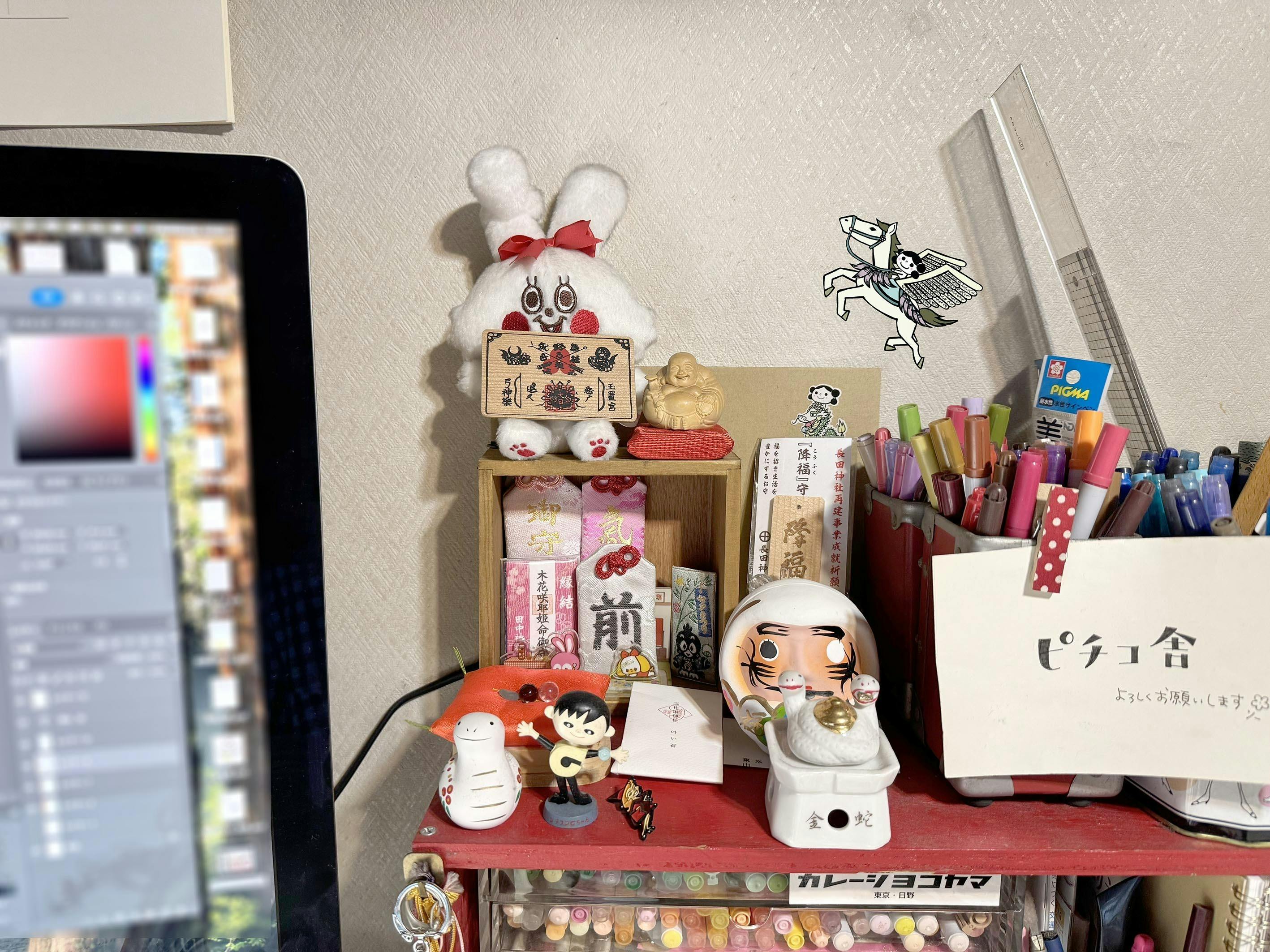一部ですが、私の机に鎮座するお守りコーナーを紹介いたします。