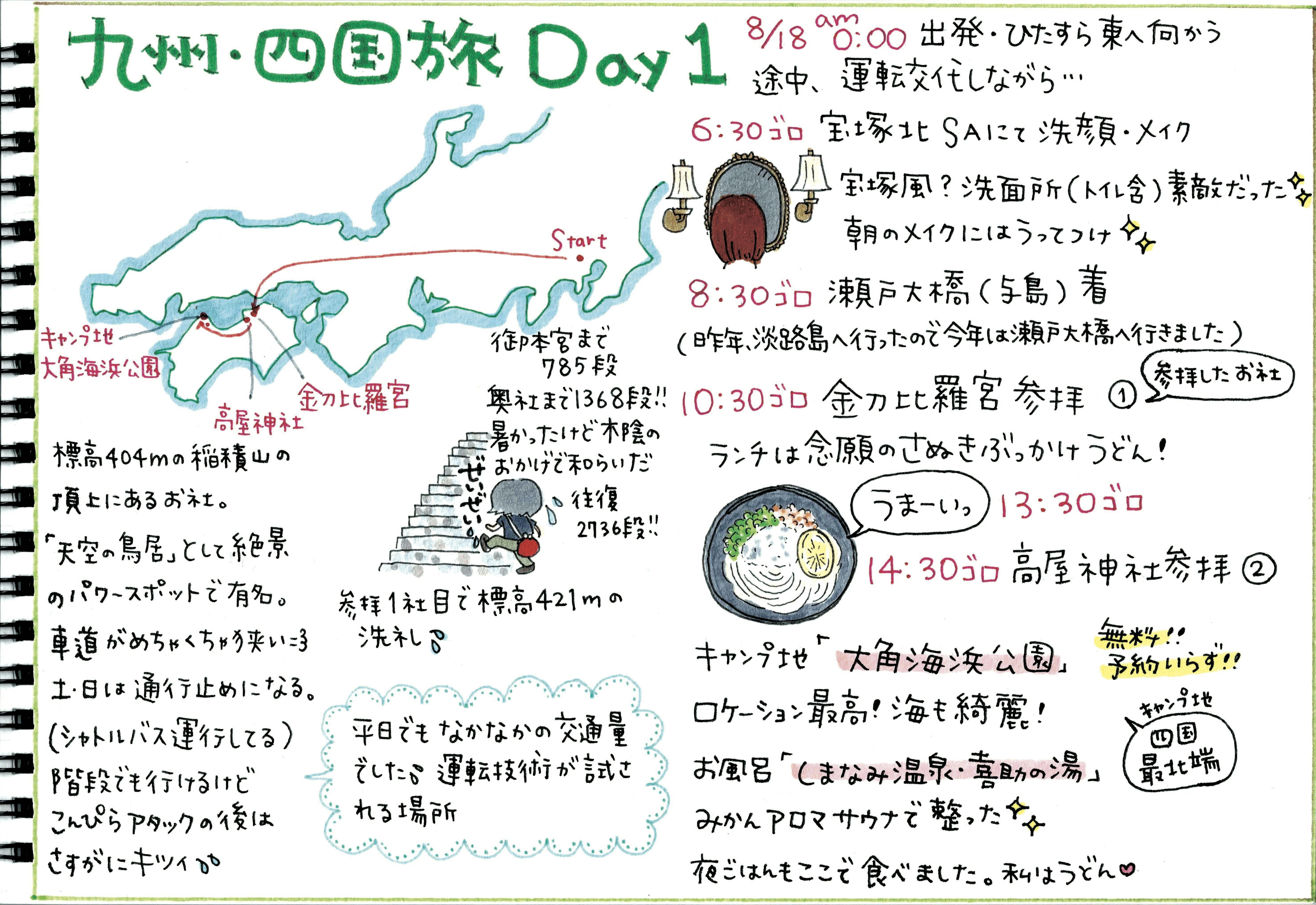 しかも旅立つ2週間くらい前に夫が「せっかくならしまなみ海道通って行きたくない?」なんて魅力的なワードを出してきたら「そうしよう!!」になって四国への寄り道も決定しました。