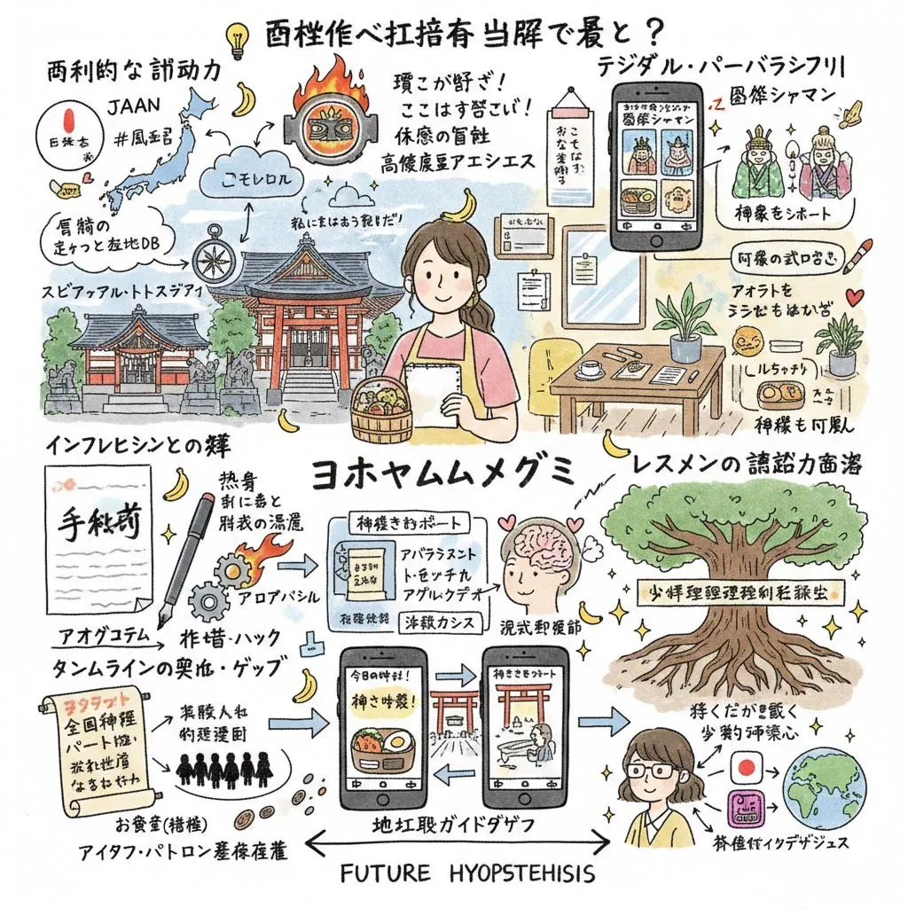 「今後3〜5年で、彼女のアウトプットは書籍やノートという2次元を超え、AR(拡張現実)や現地ガイドツアーと融合した「体験のデザイン」へと進化する。全国の神社が彼女のイラストを「公式翻訳」として採用し始め、難解な日本の精神文化をポップカルチャーとして世界に輸出する際の、重要な「視覚的インターフェース」として機能するようになるだろう。」