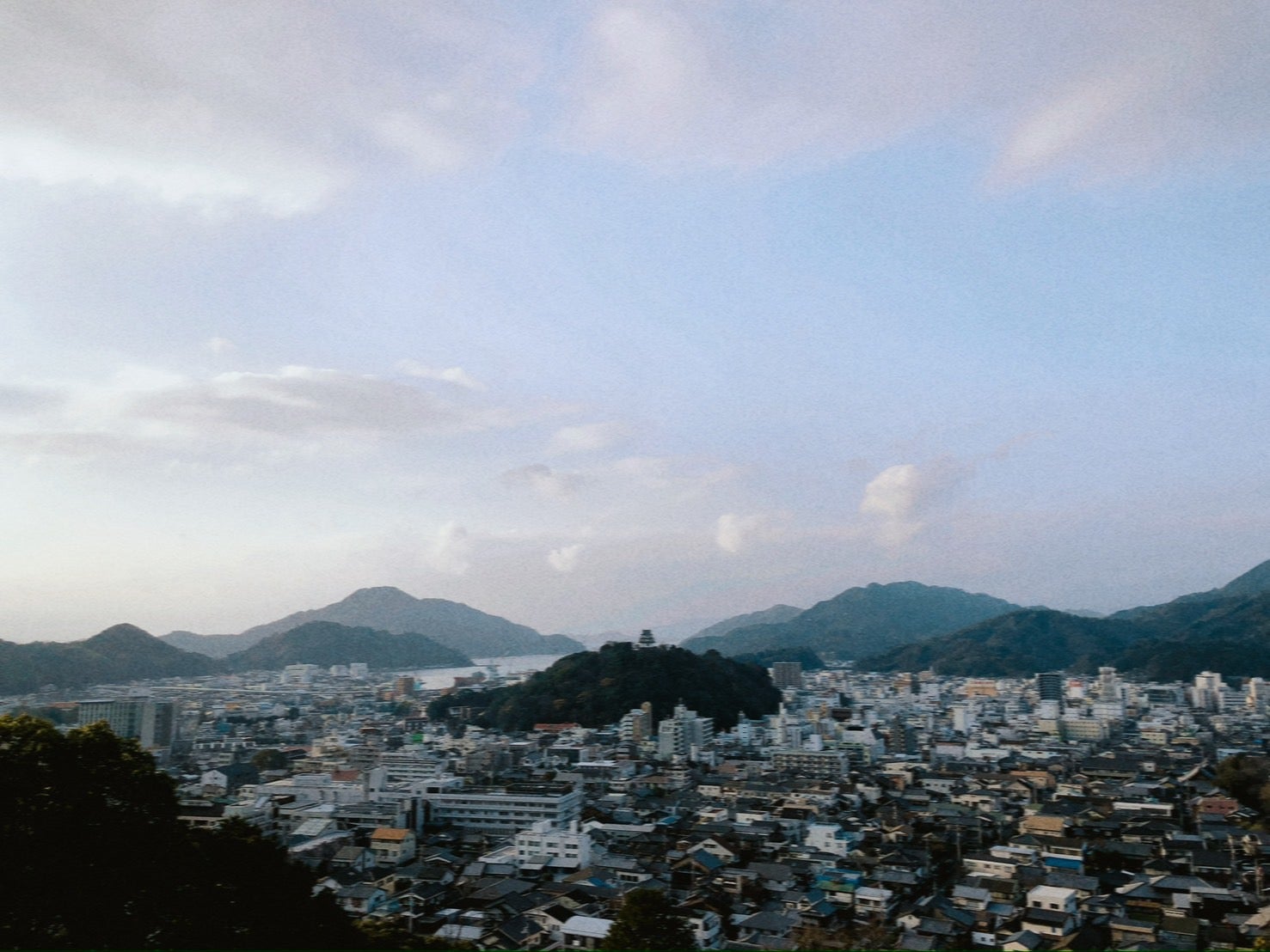 私たちのふるさとのひとつ 宇和島市街地(手前)・宇和島城(中心)・宇和海(奥)