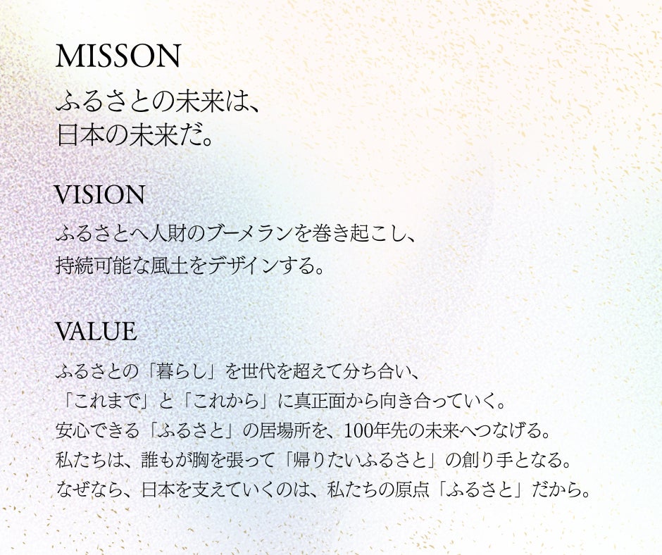 = ふるさとにワカモノを中心とした新しい人流を生み出し、地域社会を明るく、力強くする。