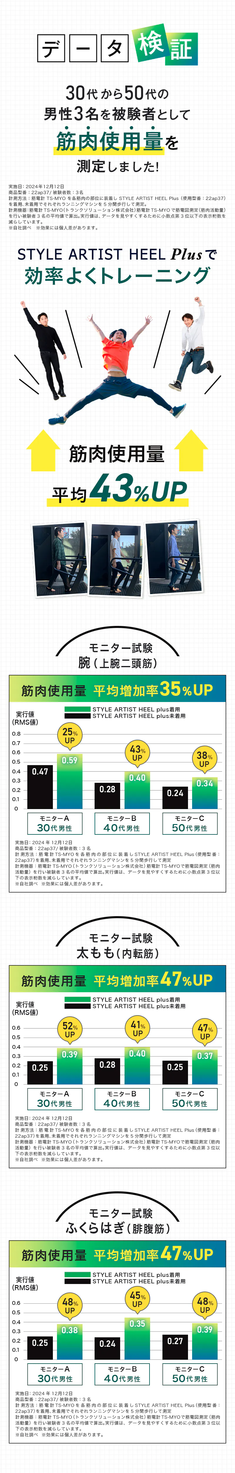 履いて歩いて筋肉使用量 平均増加率43%UP!