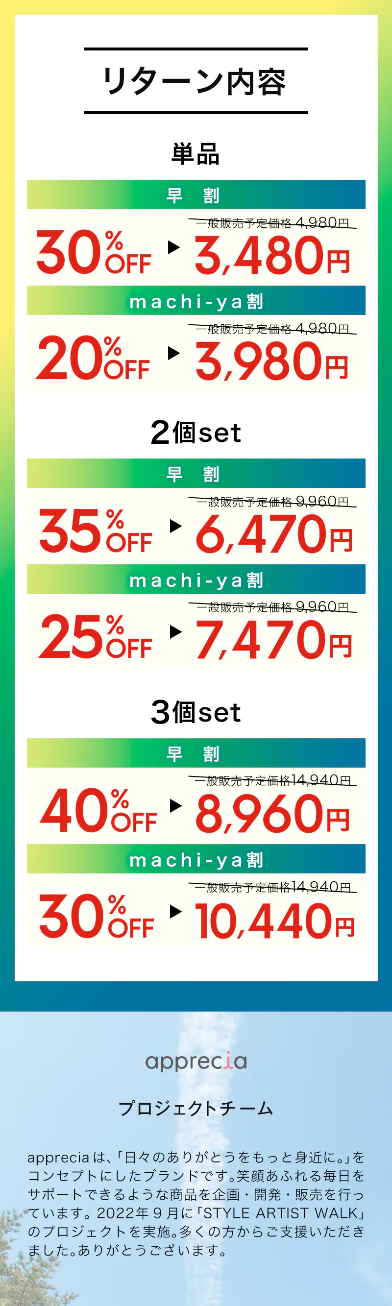 ●リターン価格:各リターン記載の通り *商品内容についてはリターン欄記載の通り