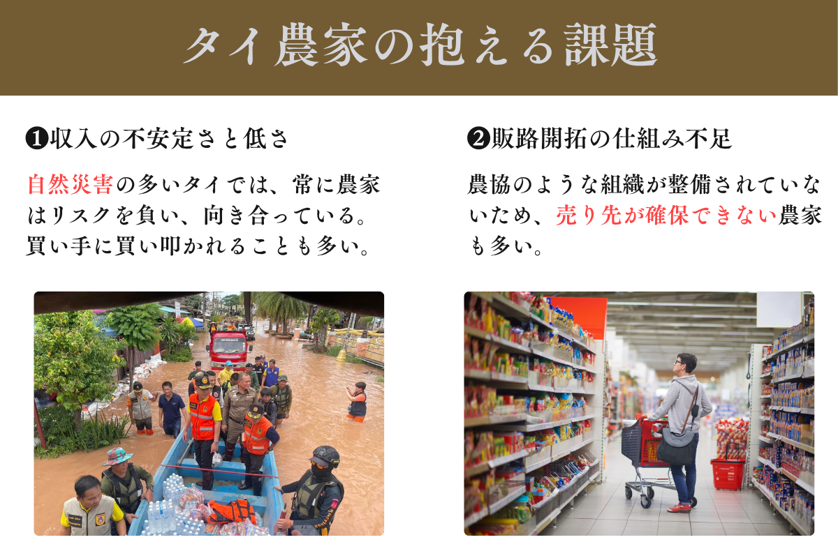 タイでは最低賃金が法的に定められているものの、農家は自営業者に分類されるため、その保護の対象外となっています。