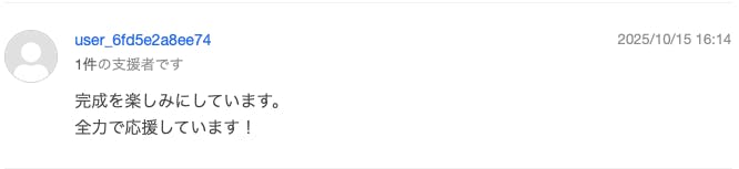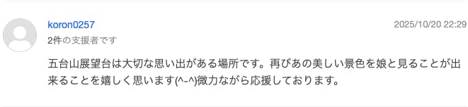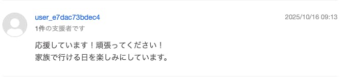 クラウドファンディングの公開後、想像を超えるスピードでたくさんの応援メッセージが届きました。