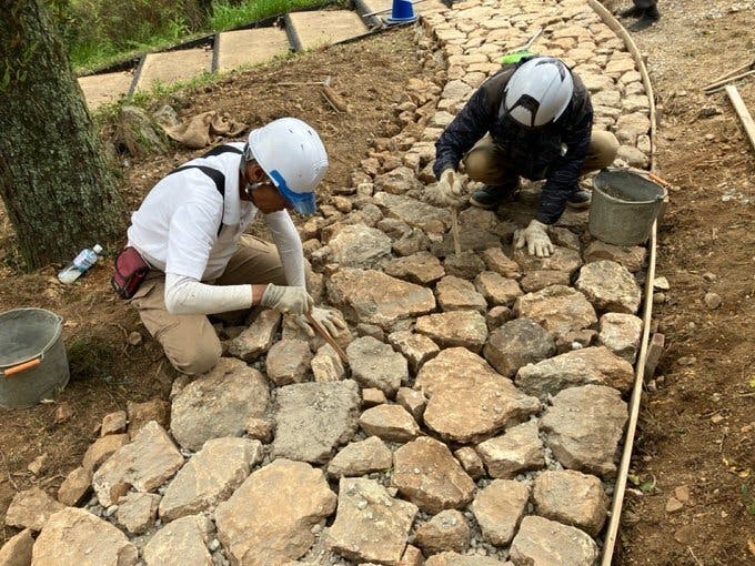 園路のほうも、職人の手により、丁寧に作業中です。