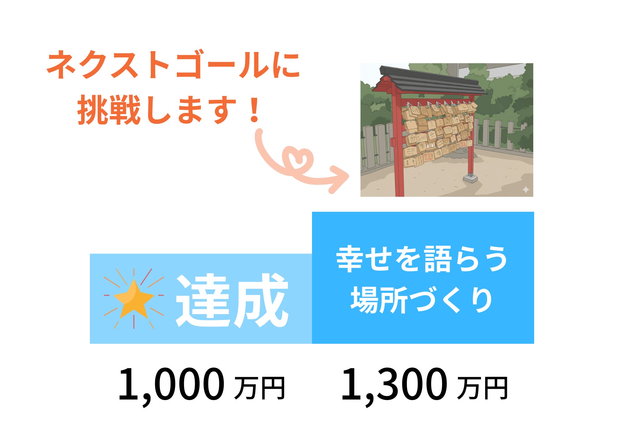 このたび、ネクストゴールとして掲げていた1300万円を達成いたしました。