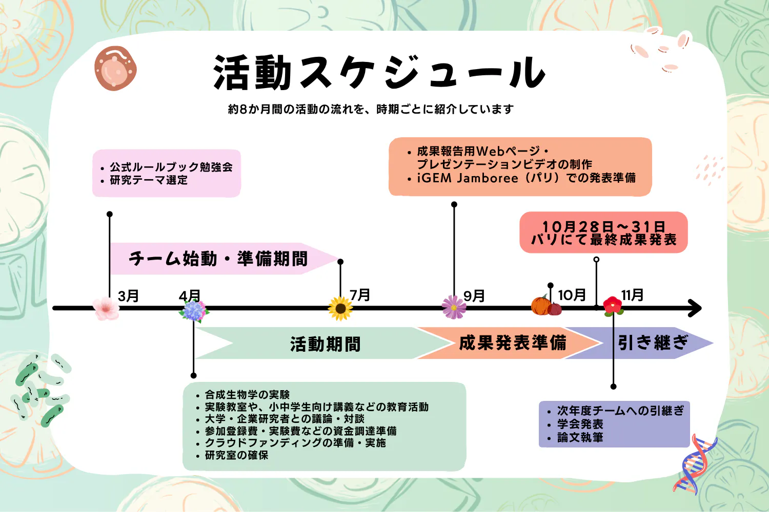 iGEM HG-Tokyoは以下の11部門でなりたっております。