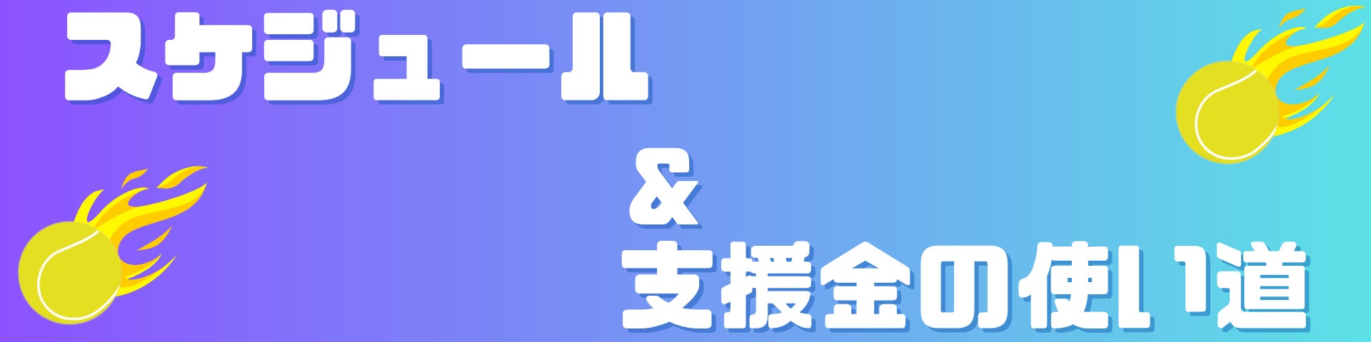 集まった支援金は、手数料・返礼品費用を除いた全てをテニスの活動資金として使用させていただきます。