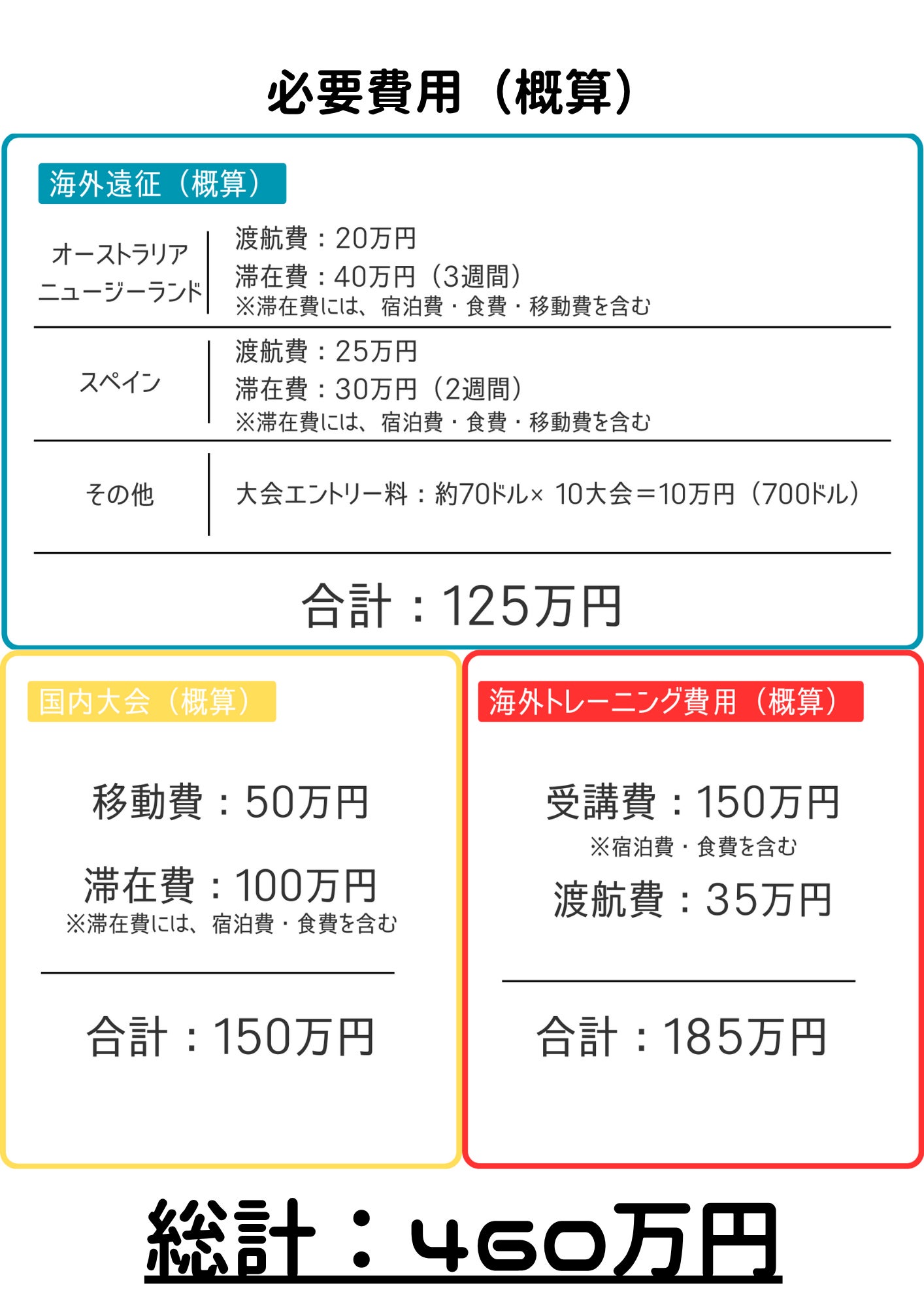限られたチャンスを掴み取りにいくために、遠征費、用具費、トレーニング費…夢に向かって進むには、資金の支援がどうしても必要です。