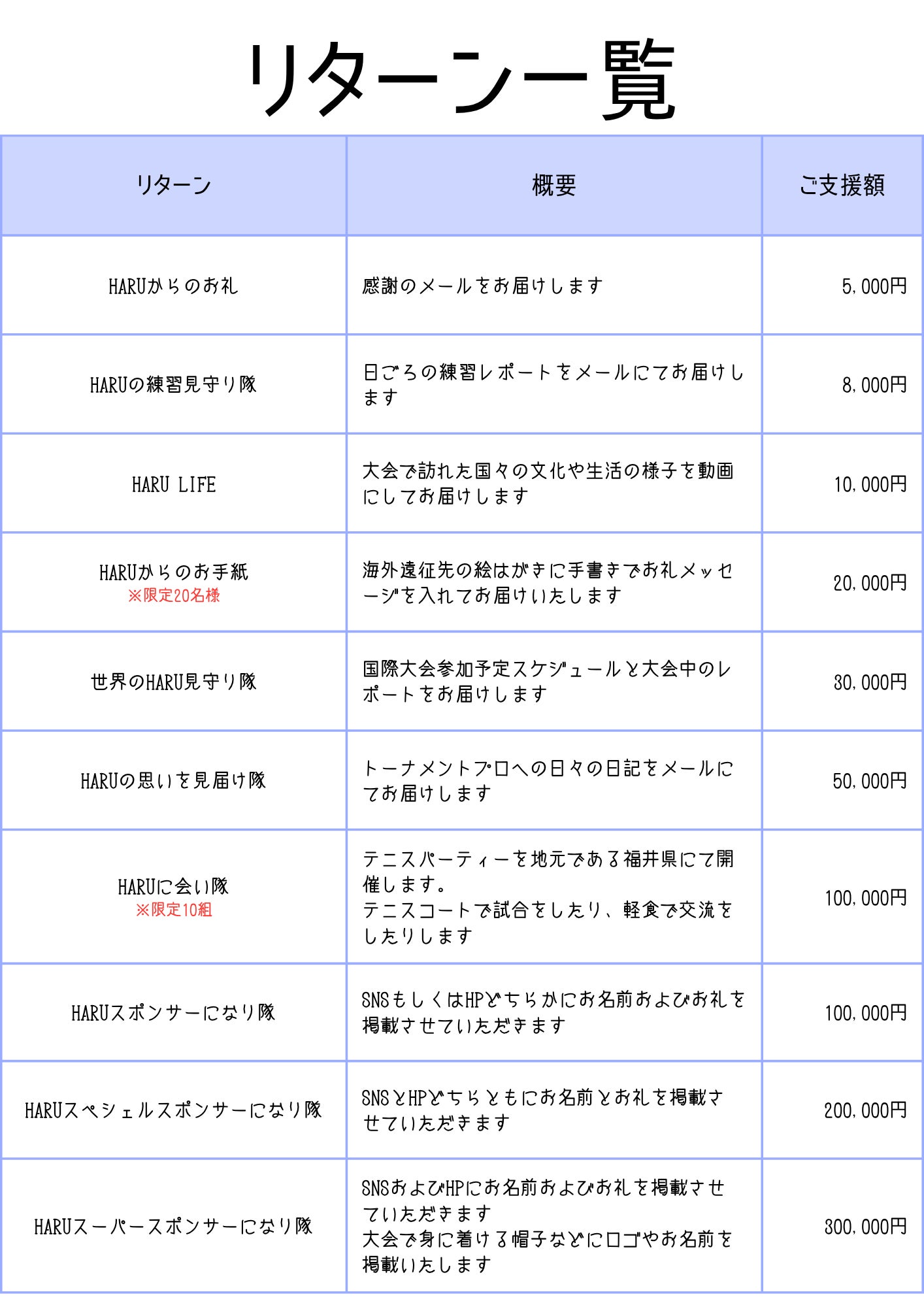 各リターンの詳細はリターン欄をご確認ください!