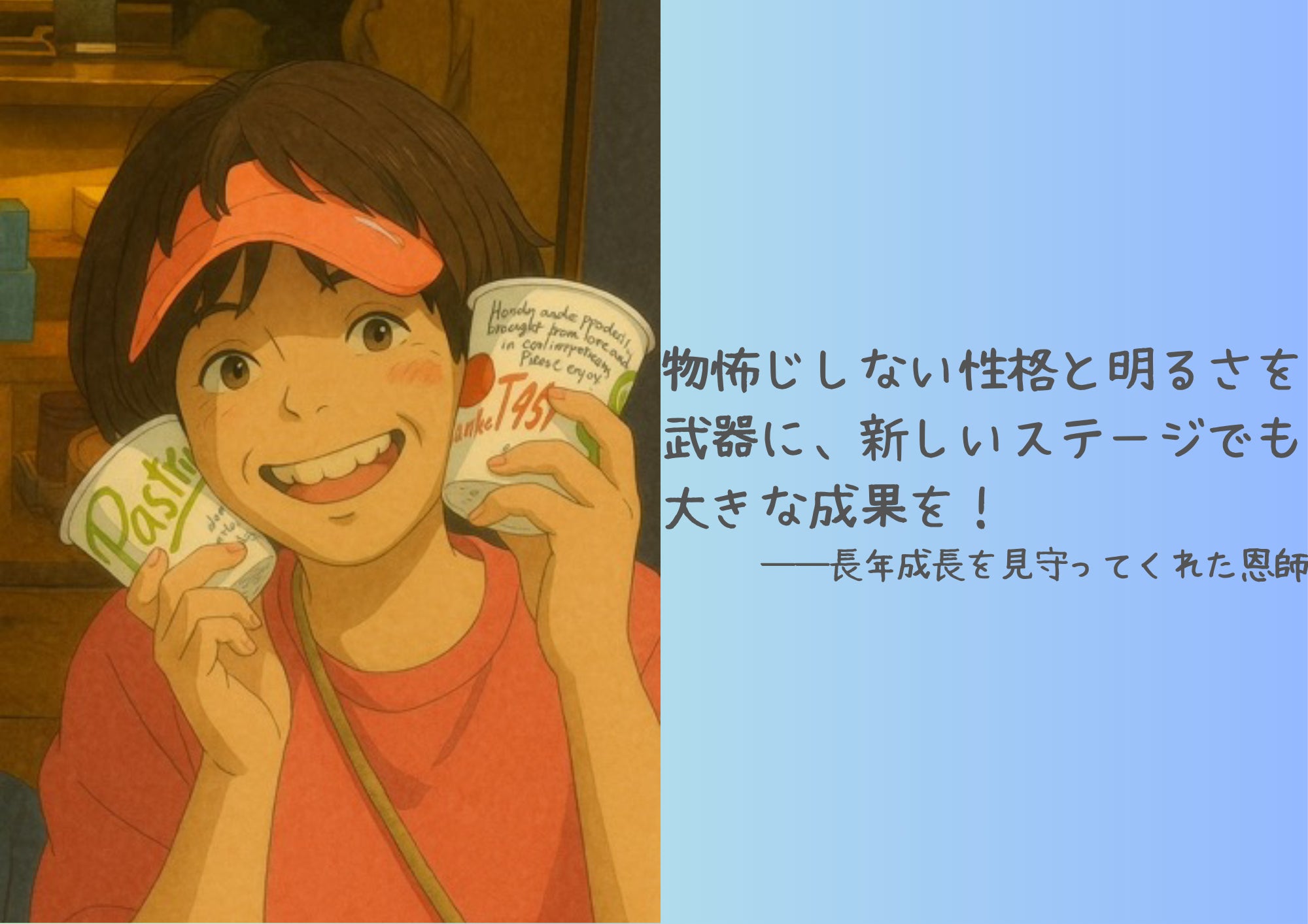 言葉も上手く通じず今とは全く違う環境になると思いますが、持ち前のコミュニケーション能力を生かして頑張ってほしいです。