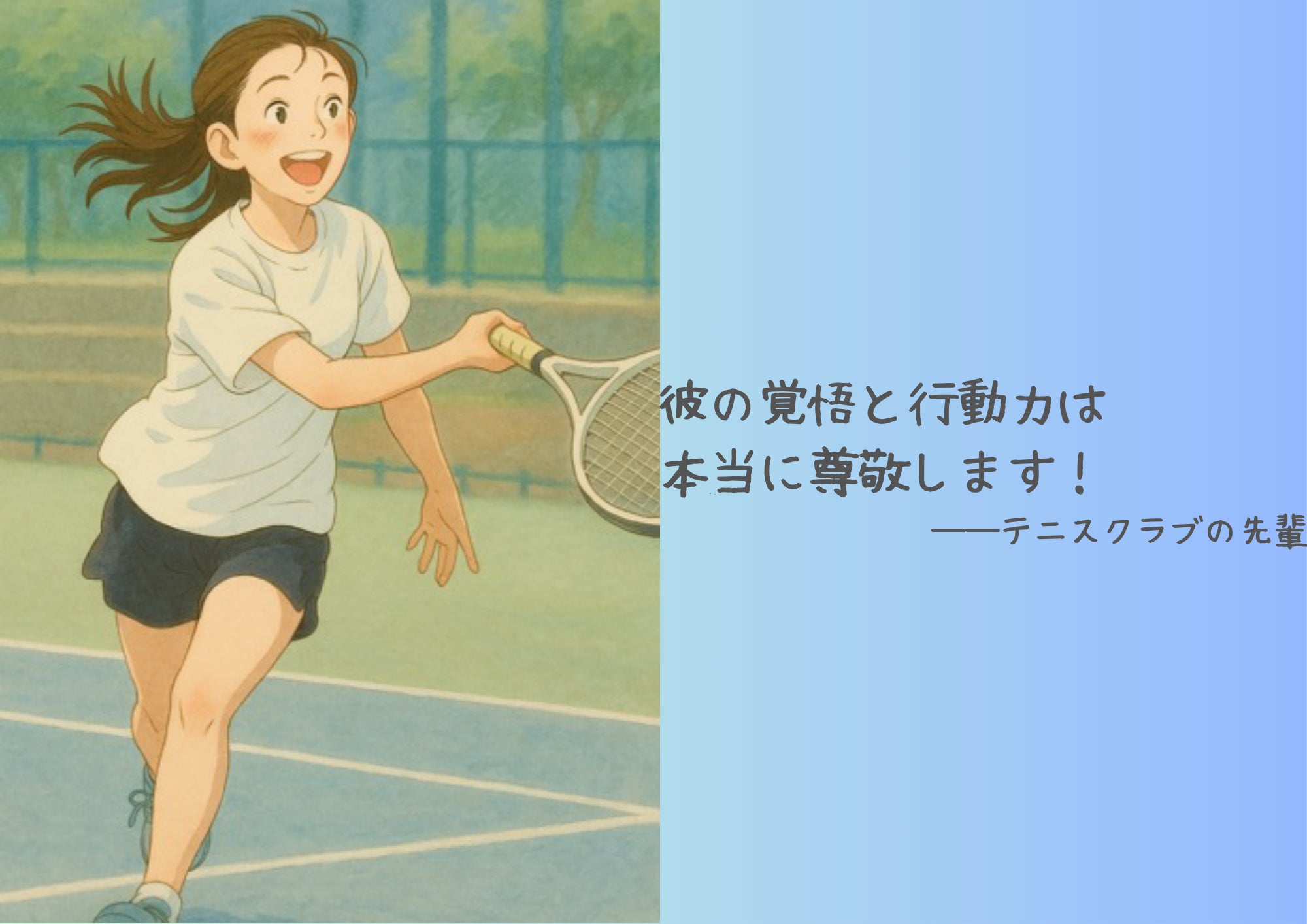 そのときは本当に驚きましたが、それ以上に、成長した姿に心からの拍手を送りました。何より、常に前向きにテニスに向き合い、多くのことにチャレンジしてきたその姿勢は、私自身にも大きな勇気を与えてくれました。