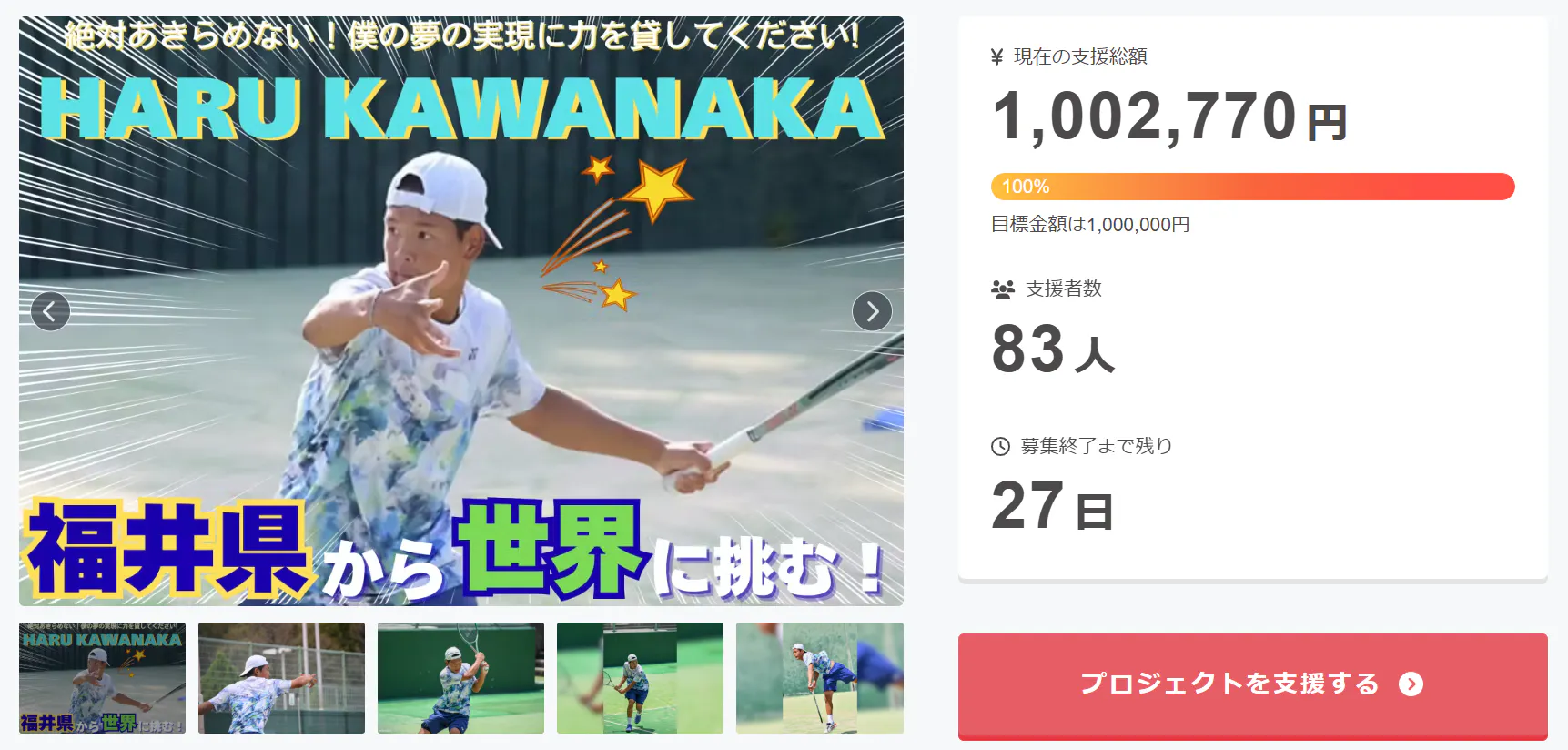 皆さまからの温かいご支援のおかげでついに100%達成しました!