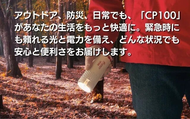 CP100は一般的な懐中電灯やランタンに対するユーザーの不満を徹底的に解消するよう設計されています。これにより、アウトドアから日常、防災まで幅広い用途で、どんな状況でも頼れるライトとして使用できます。