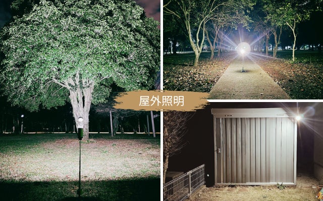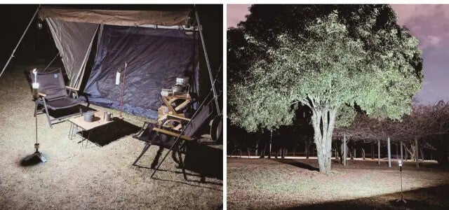 広角照明で庭や作業エリア全体を均一に明るく照らします。三脚とマグネット設置が可能で設置が簡単かつ安定します。