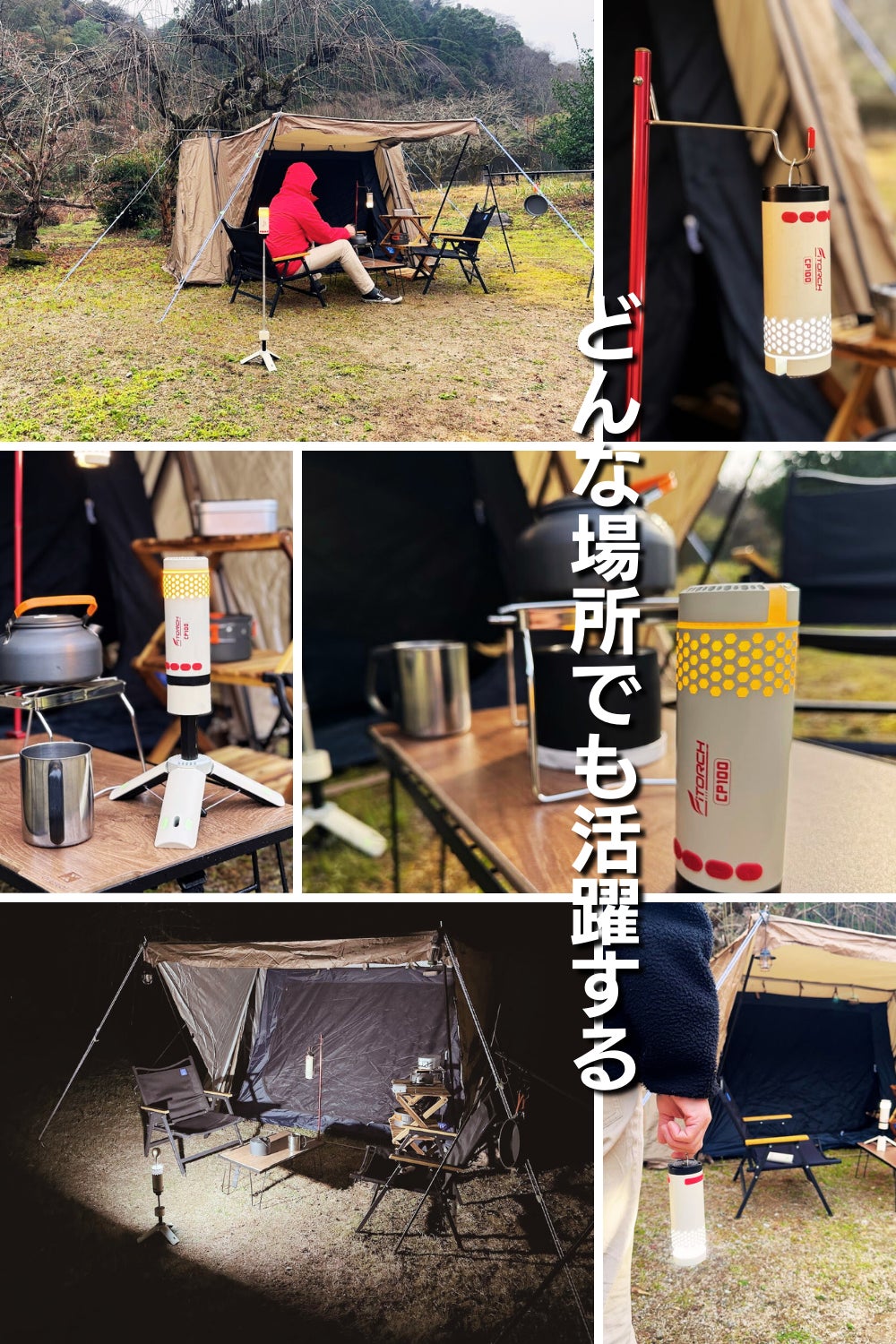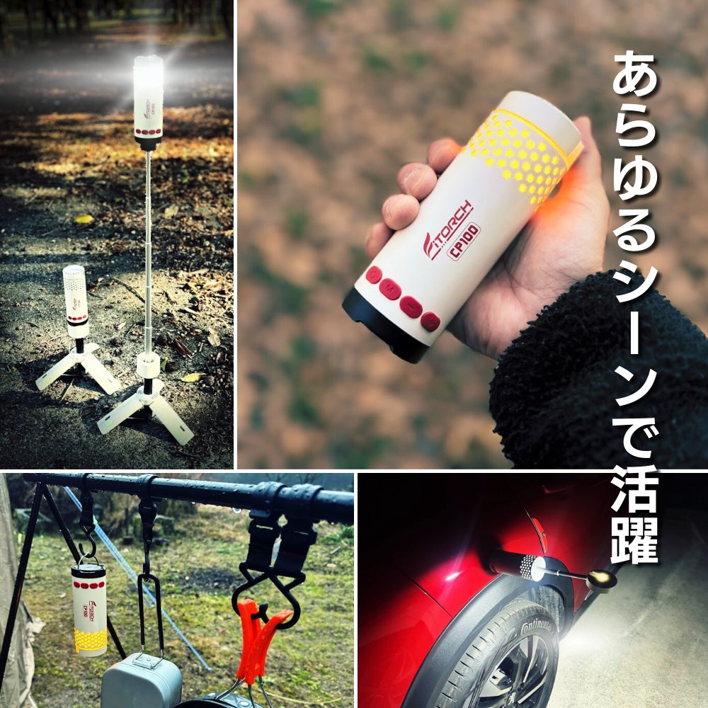 「CP100」一つでキャンプランタン、卓上ライト、懐中電灯、撮影照明などマルチに使い分けが出来てあなたの生活をサポートします。