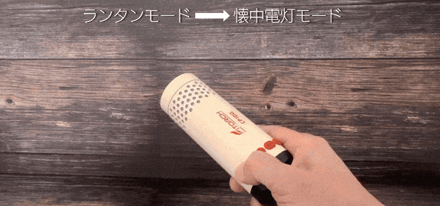 ランタンモードで近くを広範囲に照らし、懐中電灯モードで遠くまで明るく照らします。