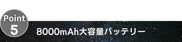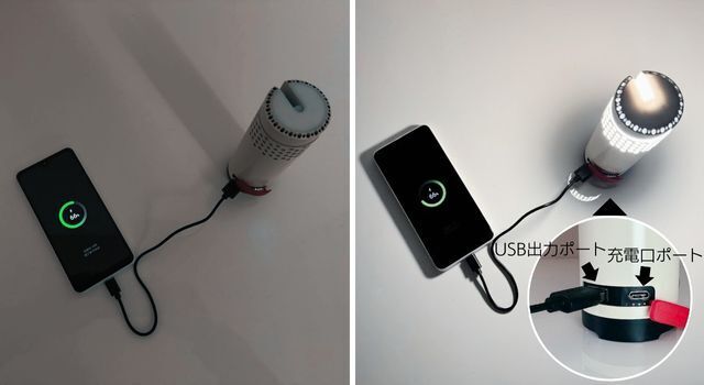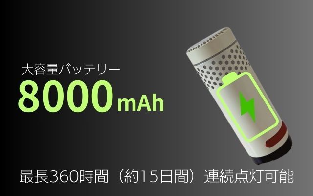 CP100は、8000mAhの大容量バッテリーを内蔵しており、照明としてだけでなく、スマートフォンやタブレットなどのデバイスを充電できるモバイルバッテリー機能を備えています。