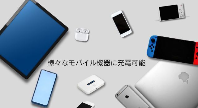 スマートフォン(iPhone、Android)をはじめ、iPod、タブレット、カメラ、ゲーム機器など様々な機器に充電できます。