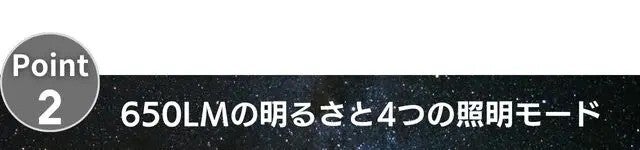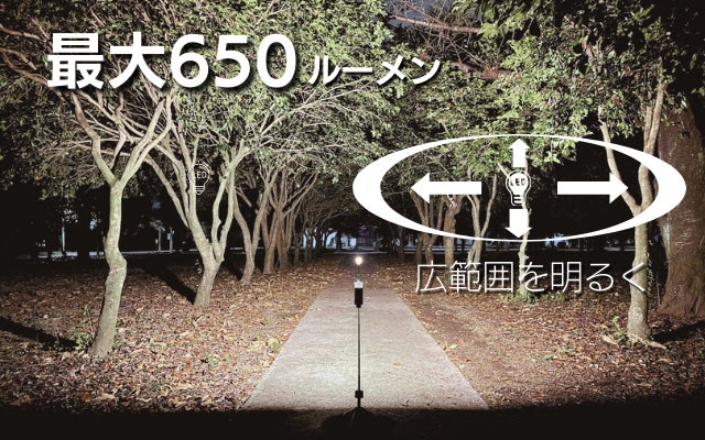 最大650ルーメン:最大30メートルの照射距離で、暗闇を広角にしっかり照らします。