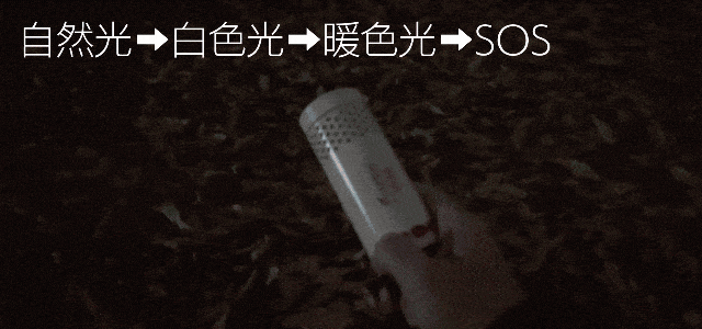 4つの照明モード:自然光、白色光、暖色光 + SOS(非常灯)