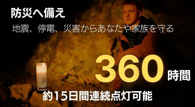 長時間点灯はアウトドアはもちろん、停電時や災害時、緊急時に威力を発揮。