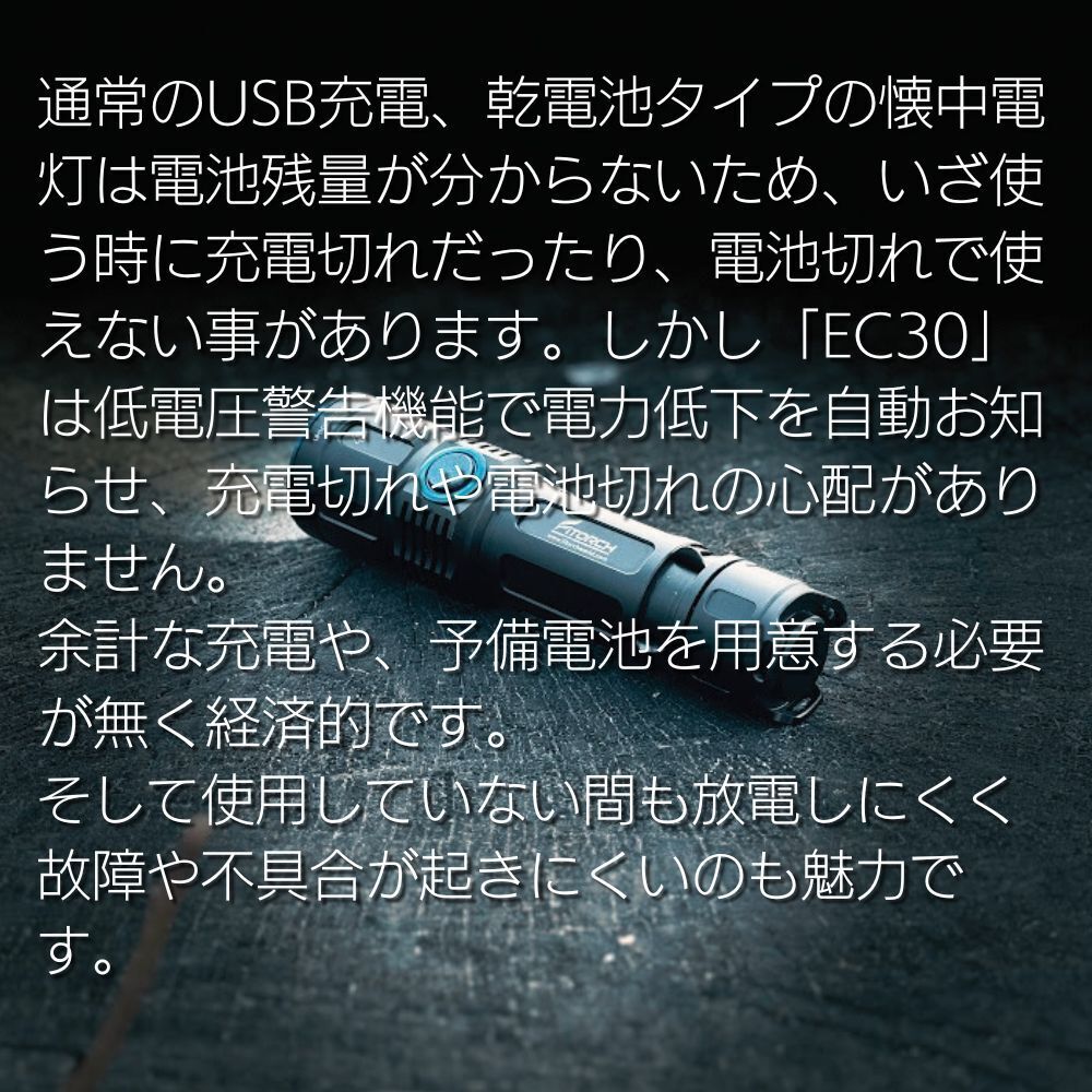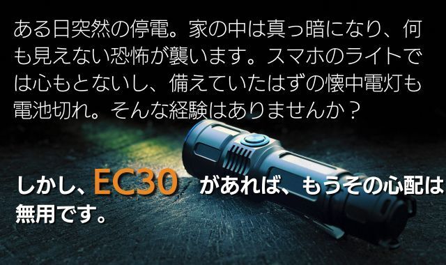 EC30は、ただ明るいだけではなく、「いざという時に確実に使える」機能を搭載、どんな状況でも頼れるライトです。