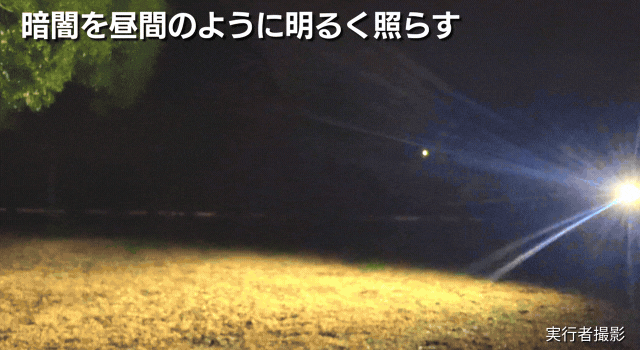 暗闇を一瞬で昼間のように明るく照らします。実際の明るさを体感して下さい。
