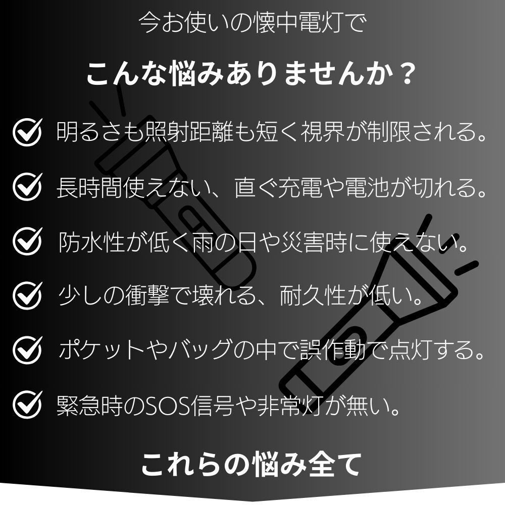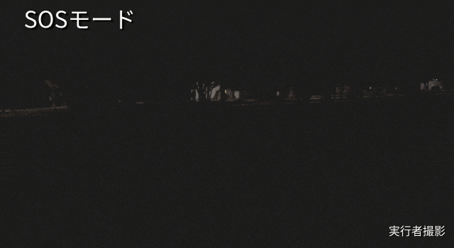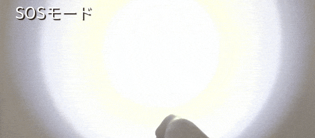 SOSモードはSOSのモールス信号を自動で点滅します。低消費電力で25時間連続点灯可能。災害や遭難したとき、スマホの電波が届かない場所など、もしもの時に少ない電力で助けを呼べます。