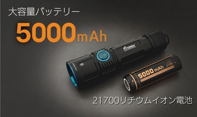 大容量5000mAh、21700リチウムイオン電池搭載。
