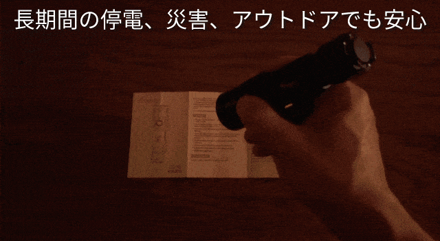 災害や停電時の明りとして電池切れの心配がなく、長期間の備えとして最適。
