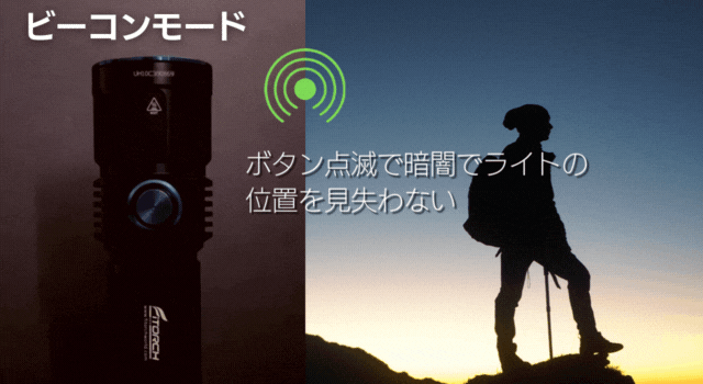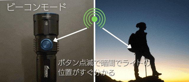 ・電源OFF時にスイッチを4回素早く押すと、ビーコンモード起動。