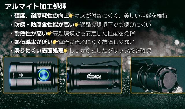 ●照明モード記憶機能搭載(ライトOFFの状態を記憶)※例えば:ターボモードでOFFにした場合、次回のON時はターボモードで点灯。