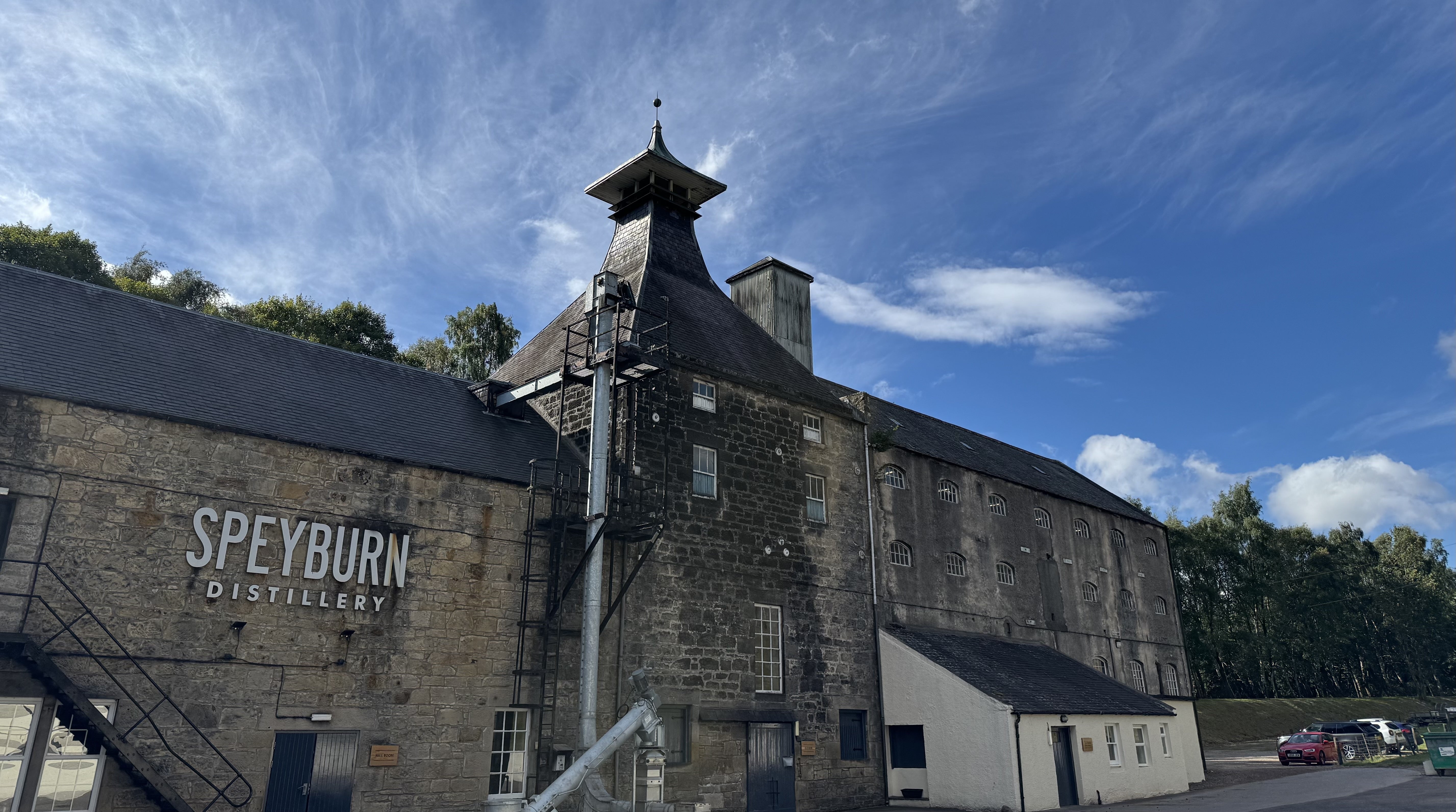 そこから徒歩で超有名ウイスキー設備メーカーのフォーサイス社の横を通り、そのまま歩いて公開休止中のグレングラント蒸溜所の横を通り、更に歩いてスペイバーン蒸溜所を目指します。非公開だったところから2023年にビジターセンターを始めた蒸溜所です。