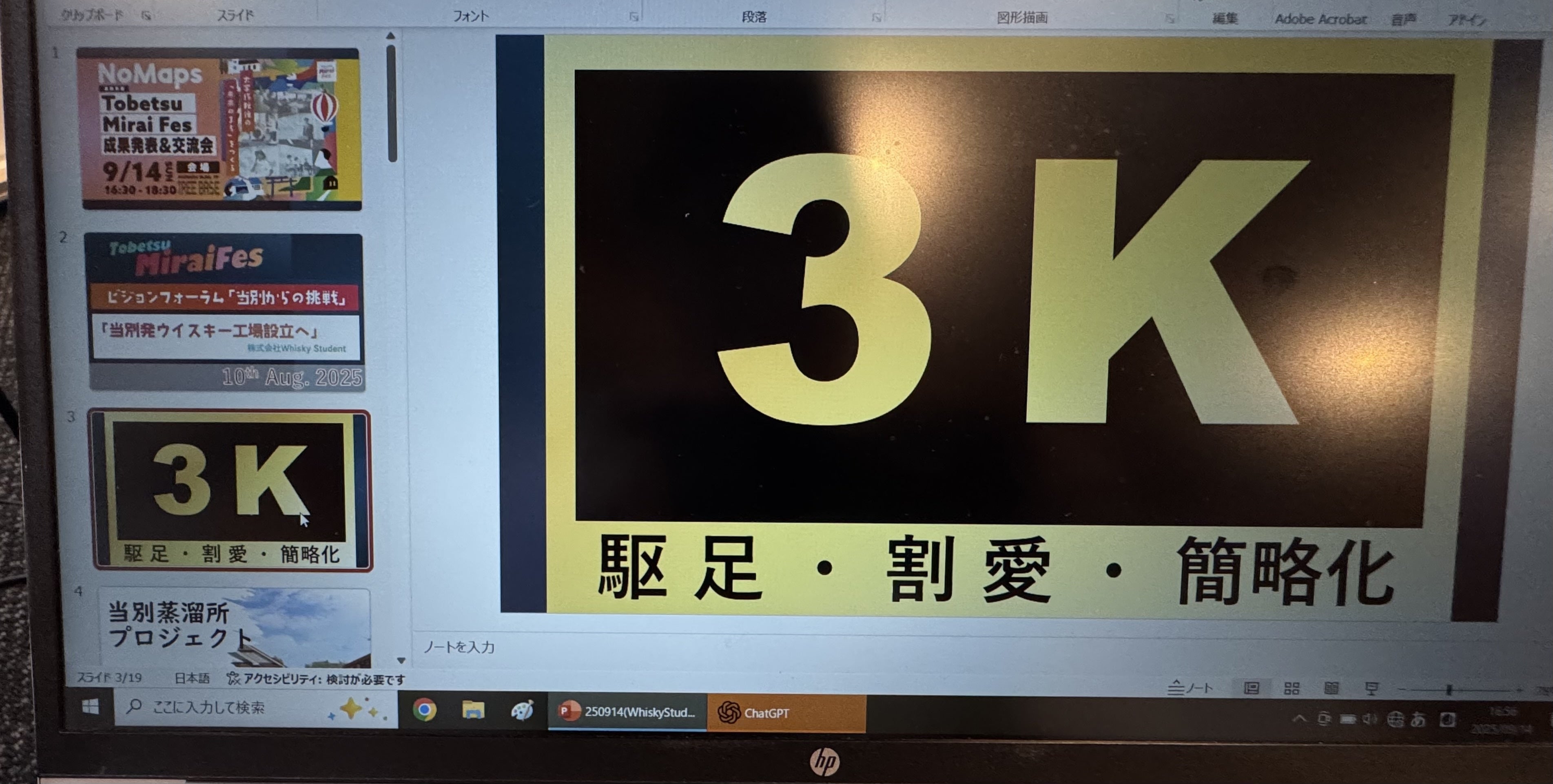 与えられた時間は4分間だったので、『駆足・割愛・簡略化』の3Kモードで発表させて頂きました。