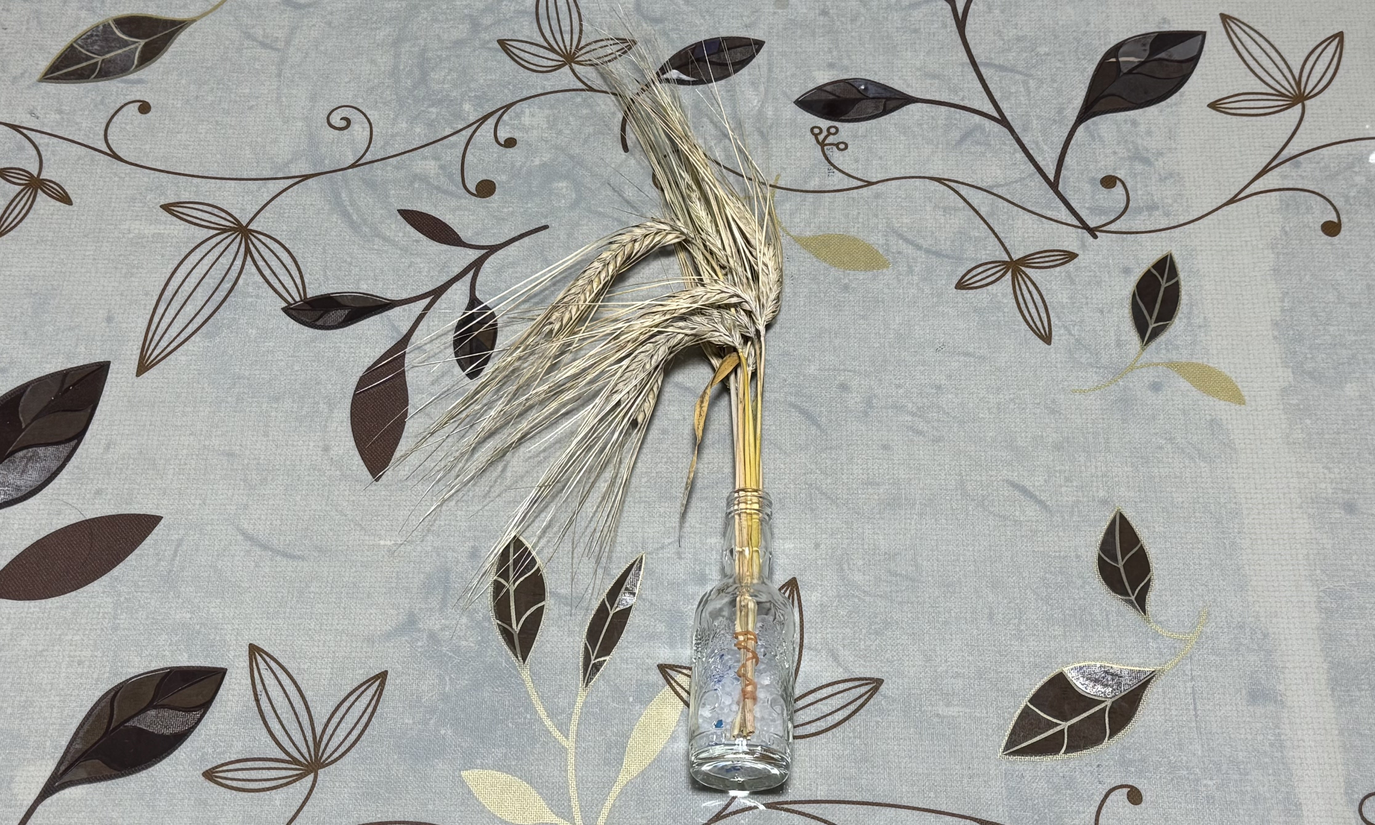 活動報告トップ画像は、茎付でカットした穂をミニチュアボトルにさしたものです。宣伝カードを置いて下さいと新たにお願いするお店に持って行こうと考えております。