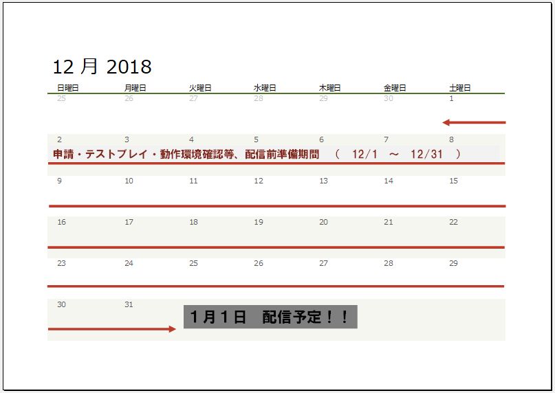 開発スケジュールは、以下カレンダーをご参照下さい。