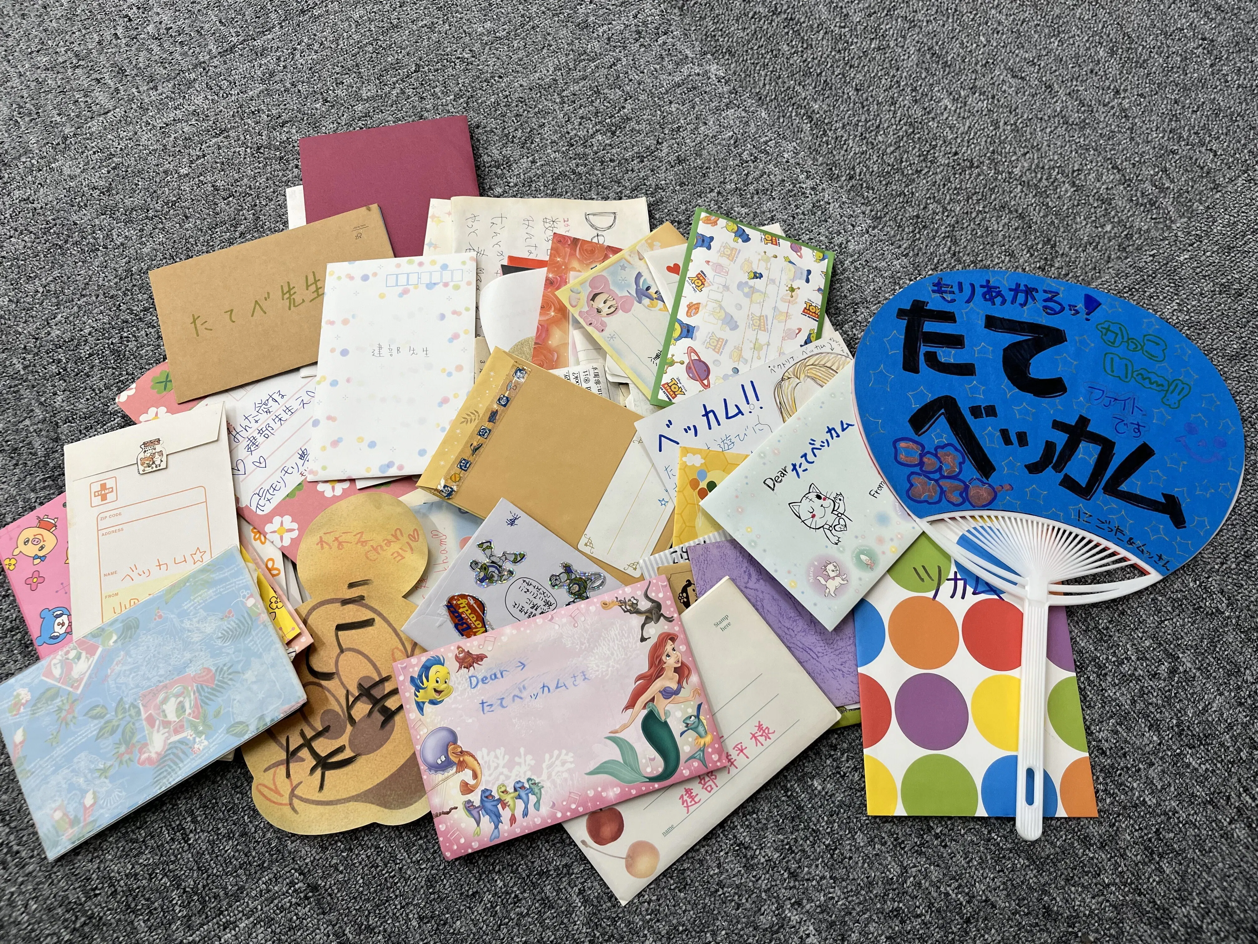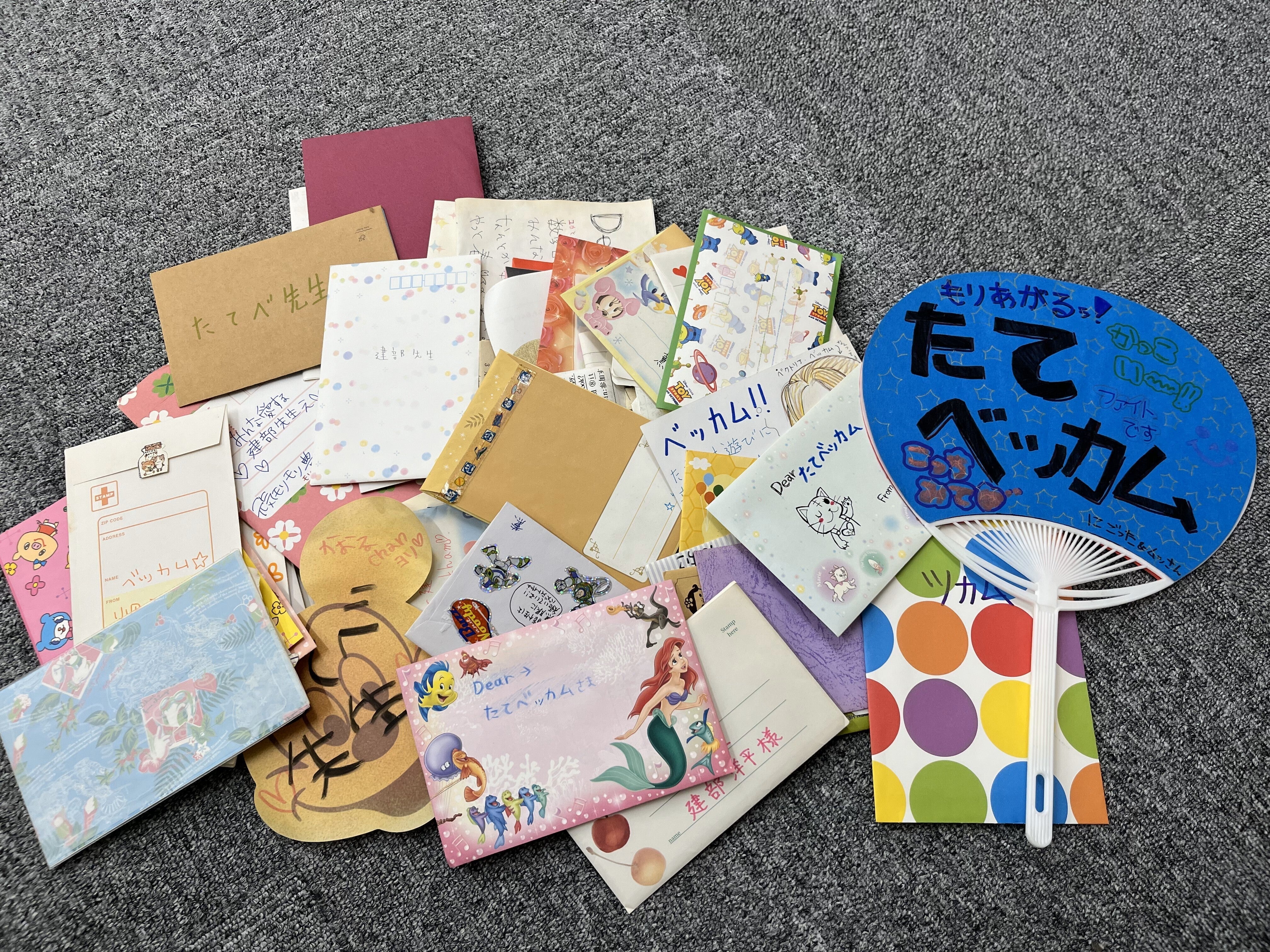 (生徒たちからもらった手紙の一部。久しぶりに読んで感動していました)