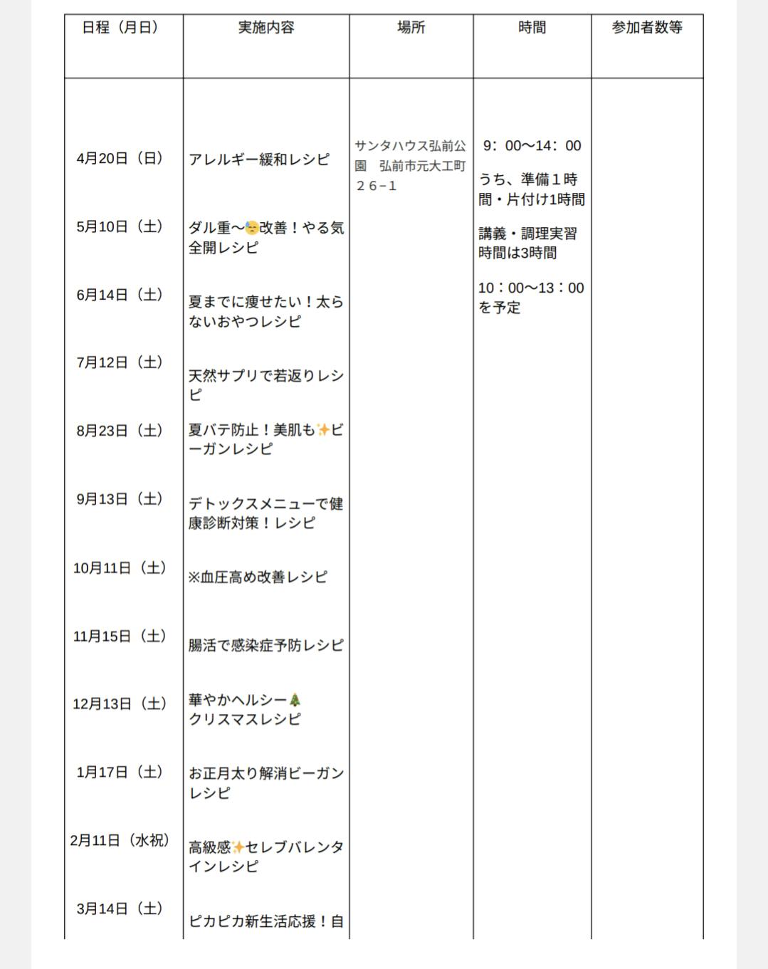📕赤本クッキングの年間スケジュール
