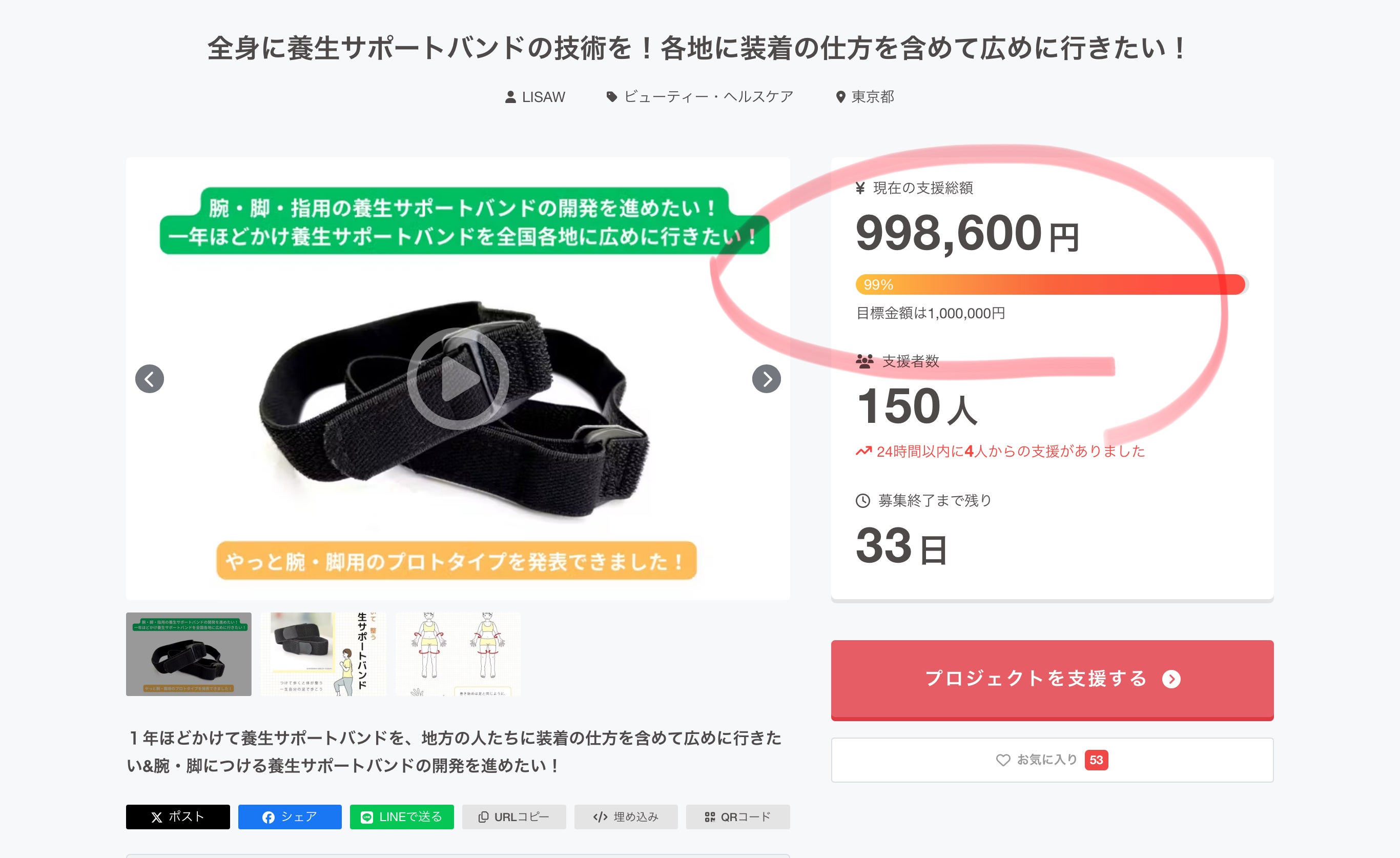目標金額は1,000,000円